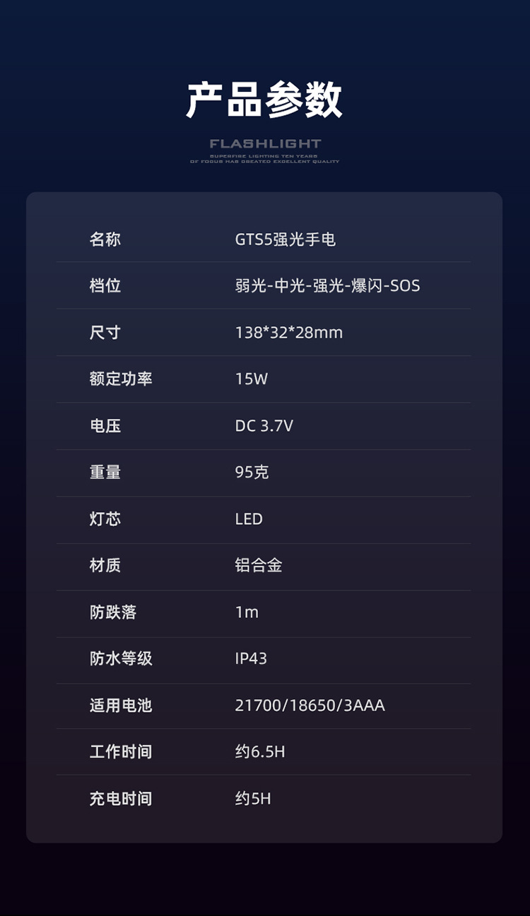神火GTS5強光超亮可充電長續航遠近變焦家用戶外小巧型便攜手電筒