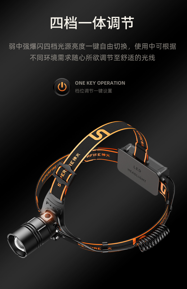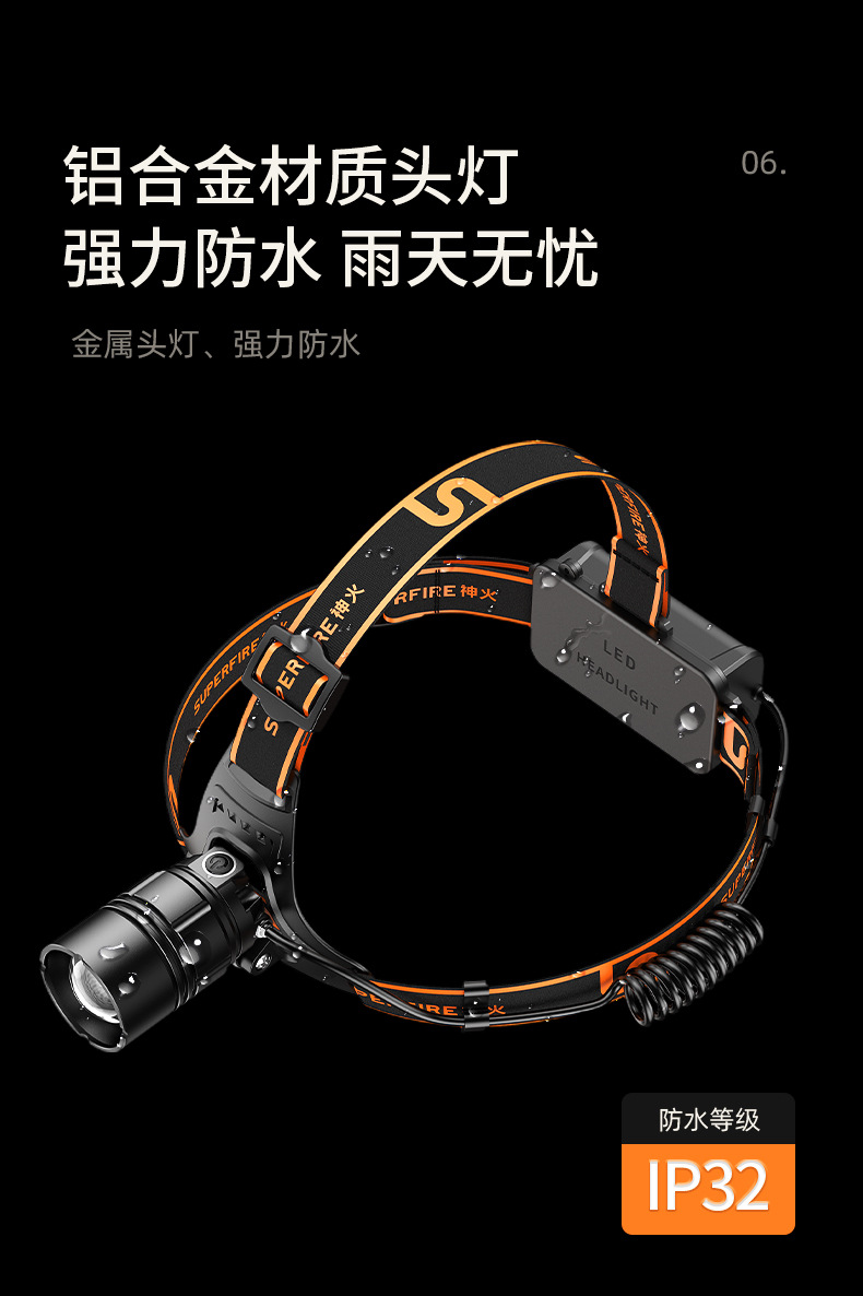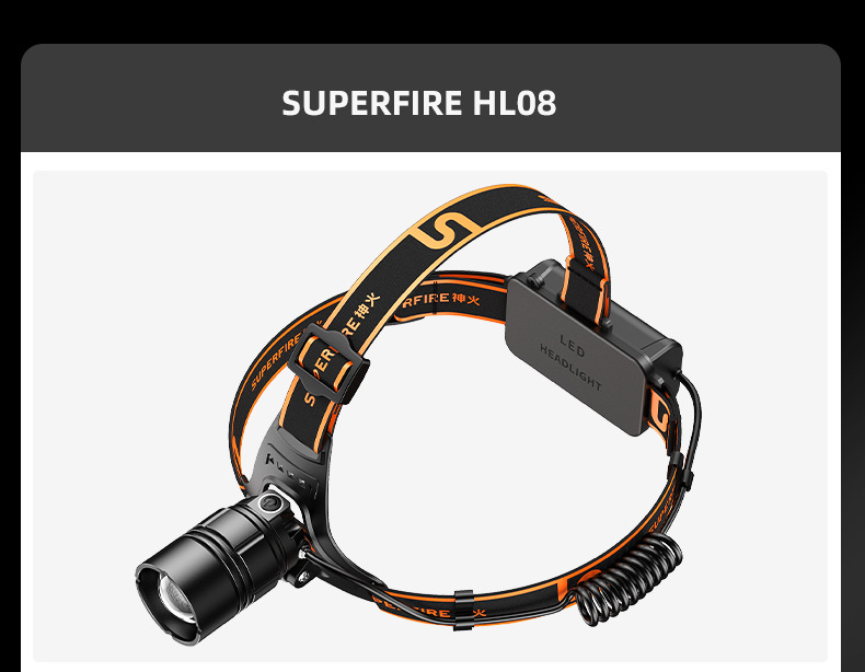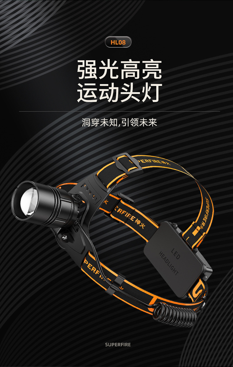 神火HL08新款20W戶外照明頭燈強光充電防水調焦led頭燈