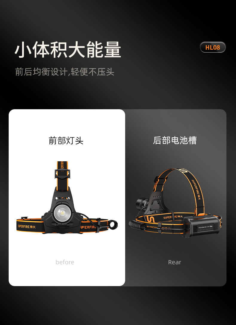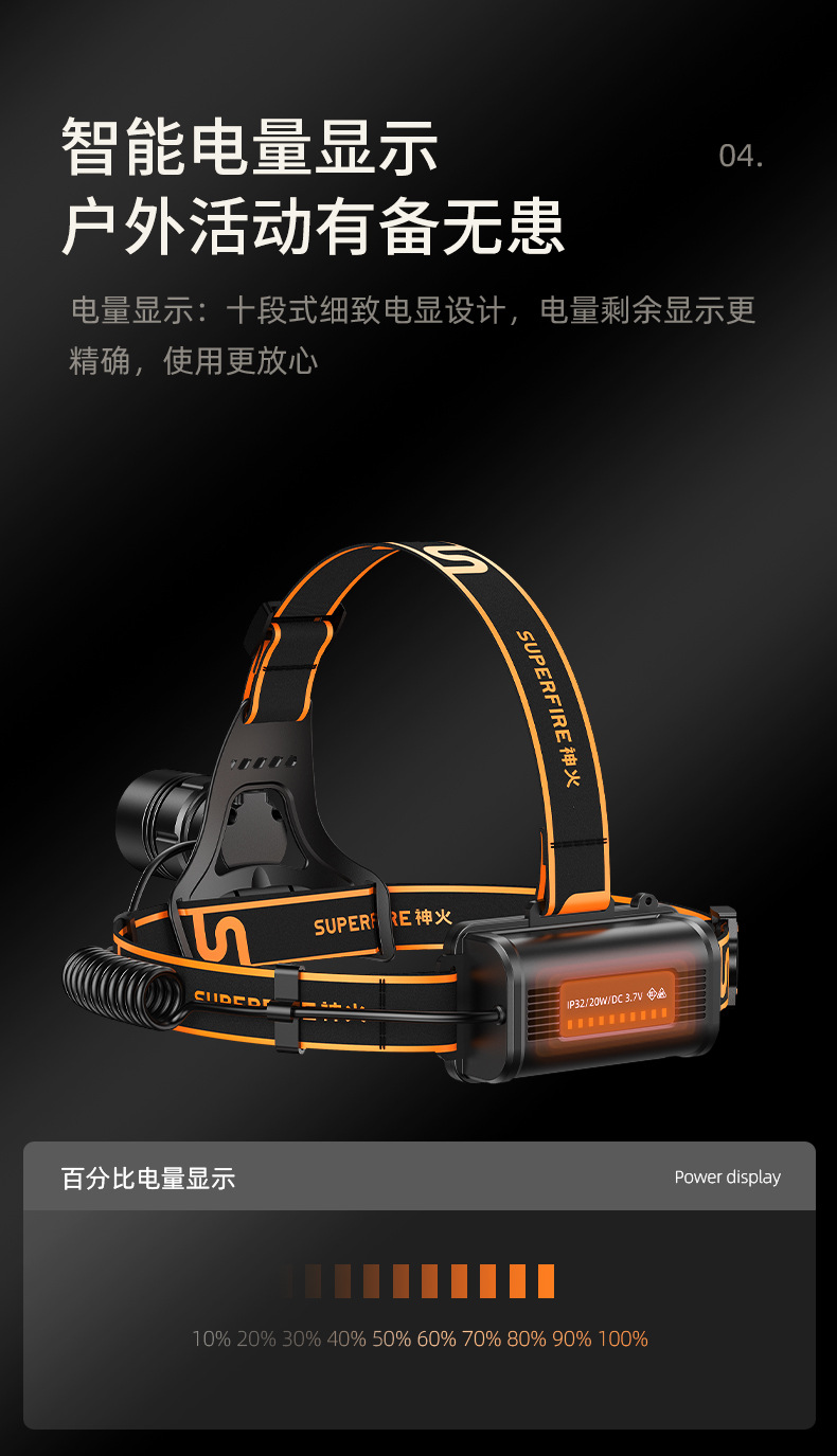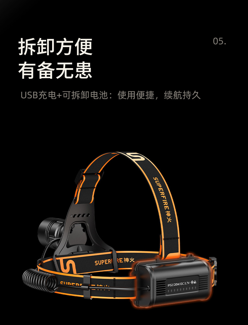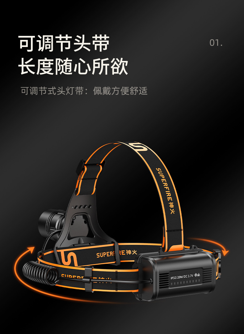 神火HL08新款20W戶外照明頭燈強光充電防水調焦led頭燈
