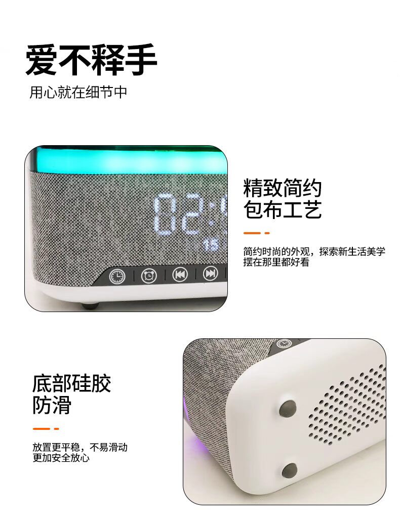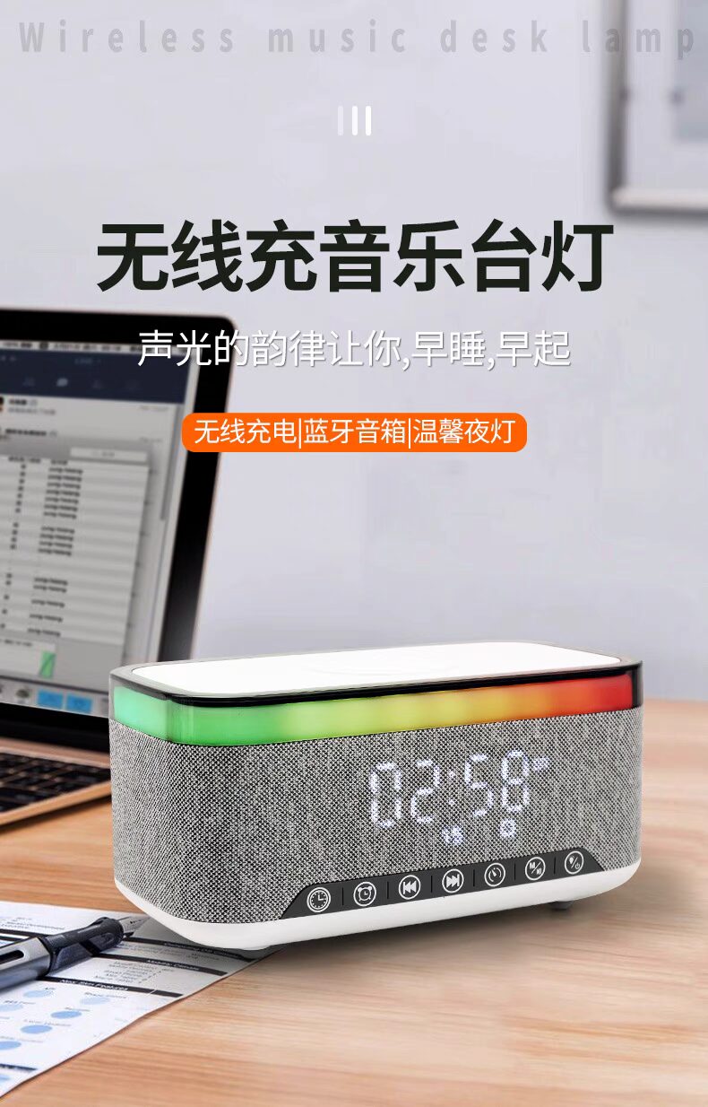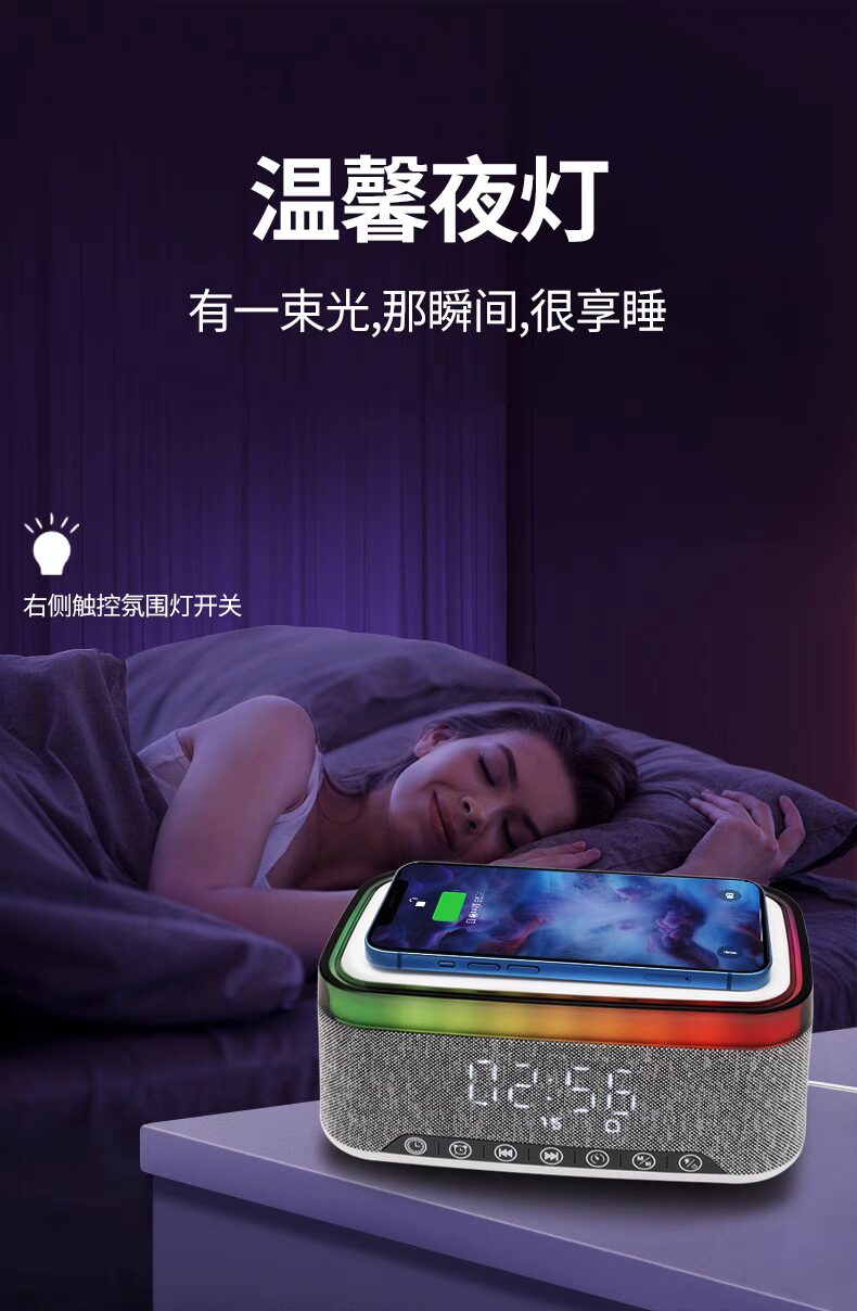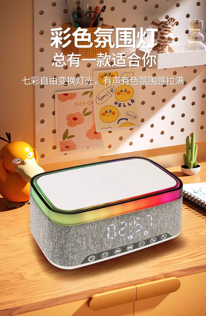 原創設計時鐘鬧鐘手機無線充電器白噪低音炮立體音效智能藍牙音箱