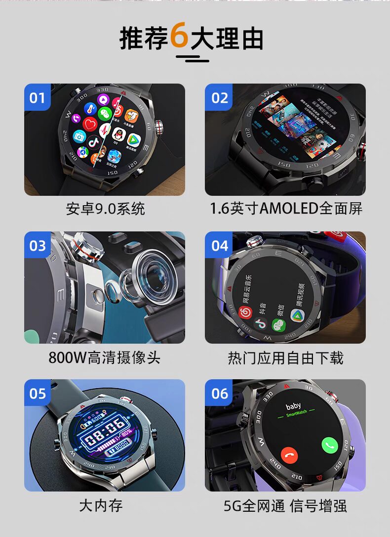 圓屏可插卡上網智能電話手表初高中學生青少年成人男款