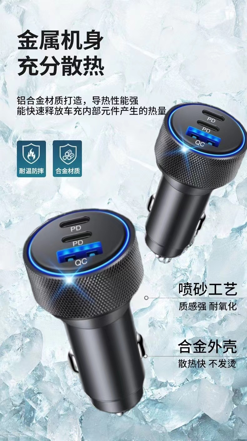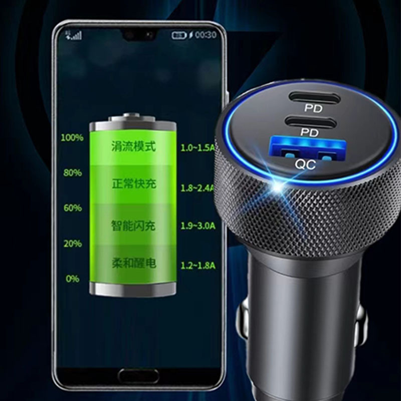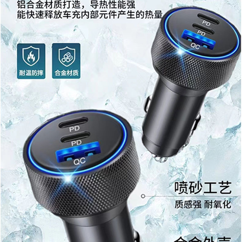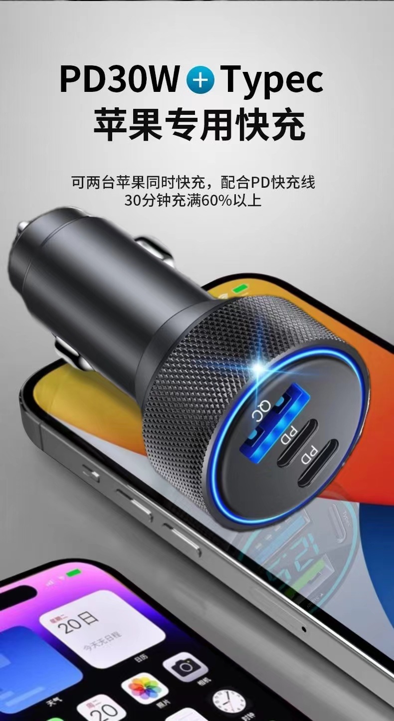 壓花鋁合金車載充電器螺紋車充PD30W車載手機充電器車充X3個