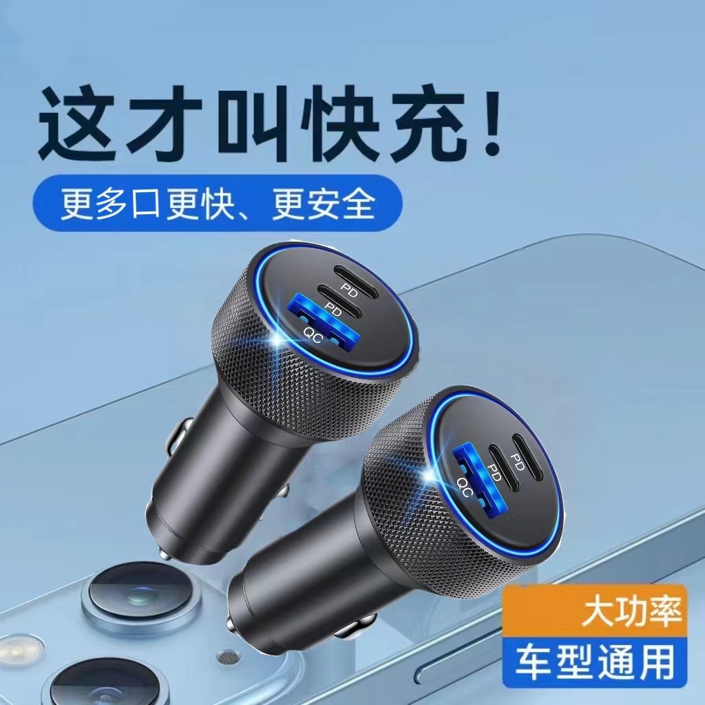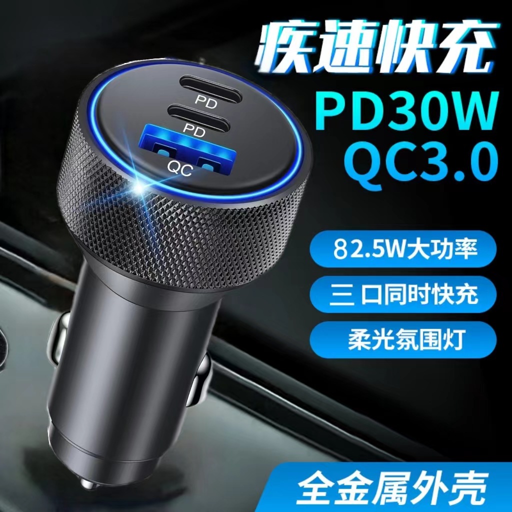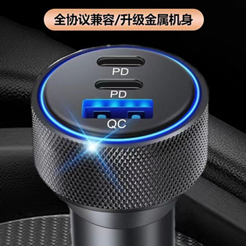 壓花鋁合金車載充電器螺紋車充PD30W車載手機充電器車充X3個