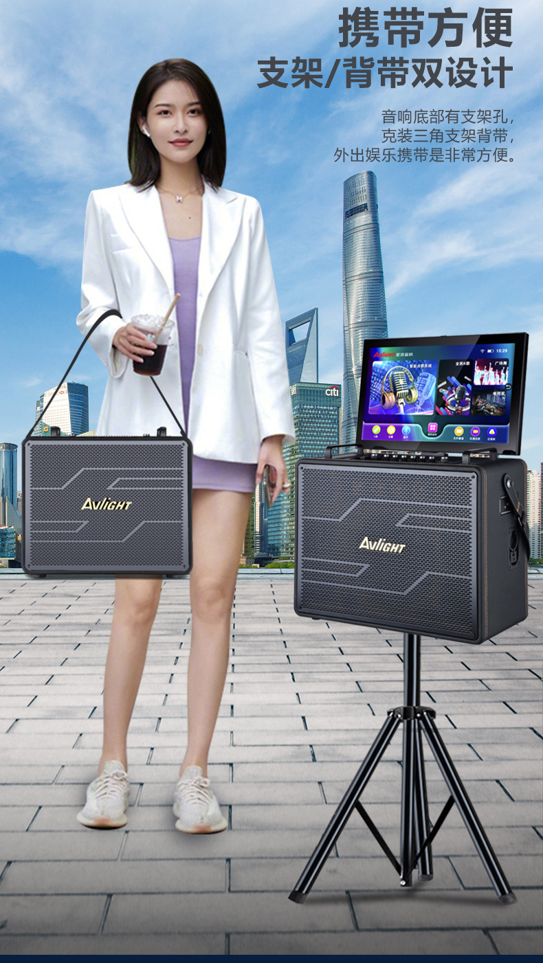 愛浪D中型家庭KTV音響廣場舞戶外移動音箱拉桿帶螢幕視頻點歌一體機 (複製)