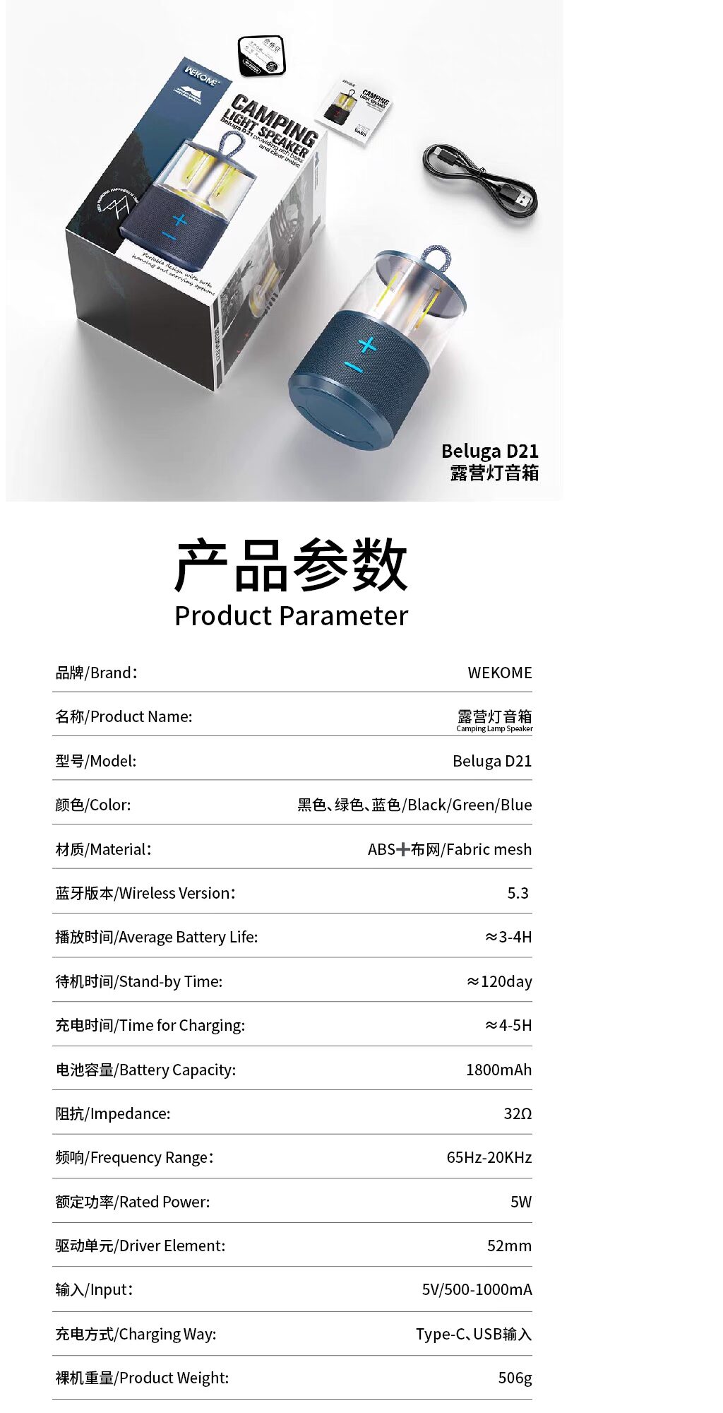 戶外露營燈LED無線藍牙音箱三檔調光式音箱