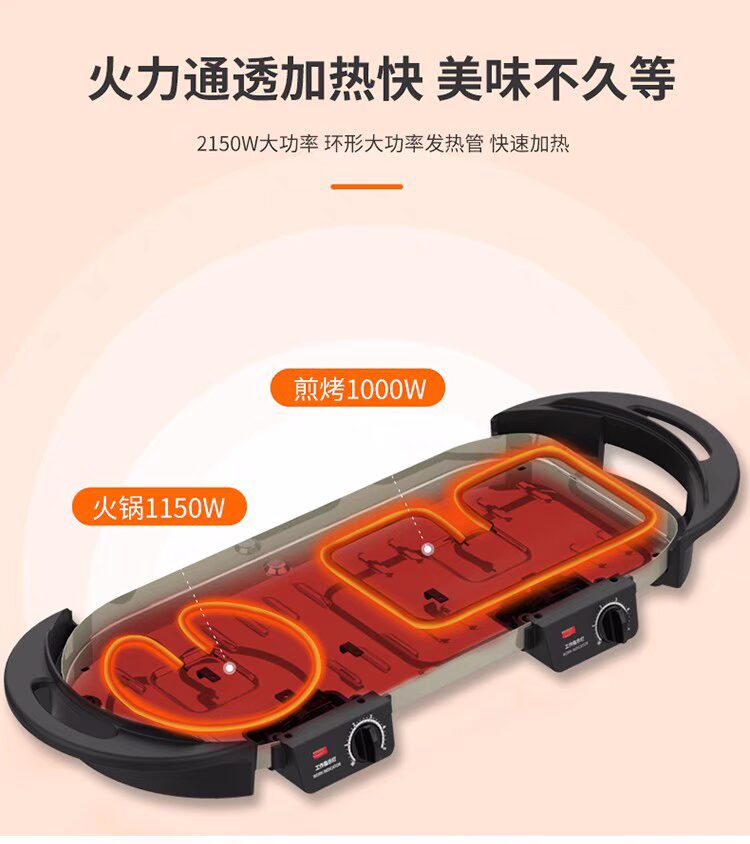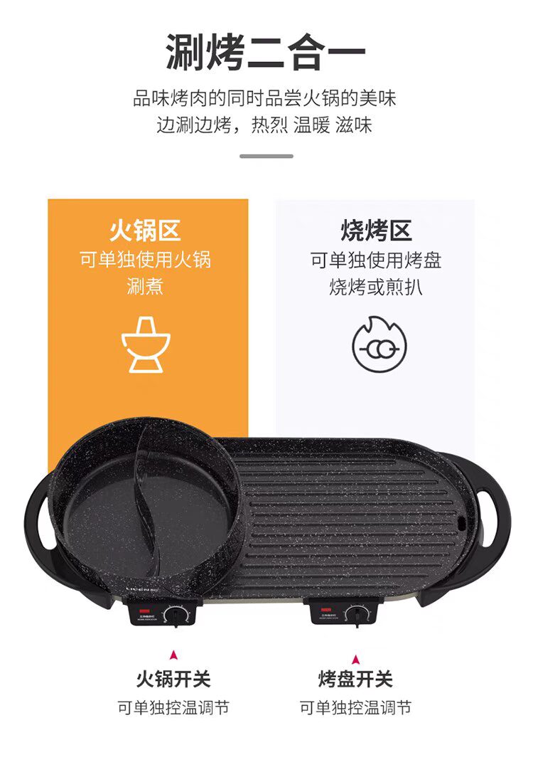 新款多功能電烤盤韓式家用烤肉機烤魚燒烤串鐵板燒一體鴛鴦鍋