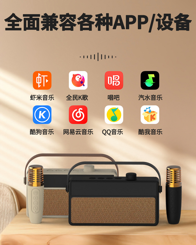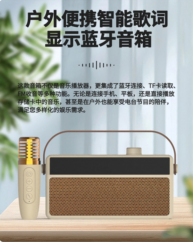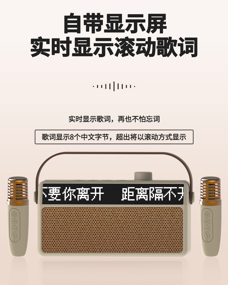 新款帶歌詞顯示屏藍牙音響 家庭聚會戶外便攜式K歌音箱低音炮音響