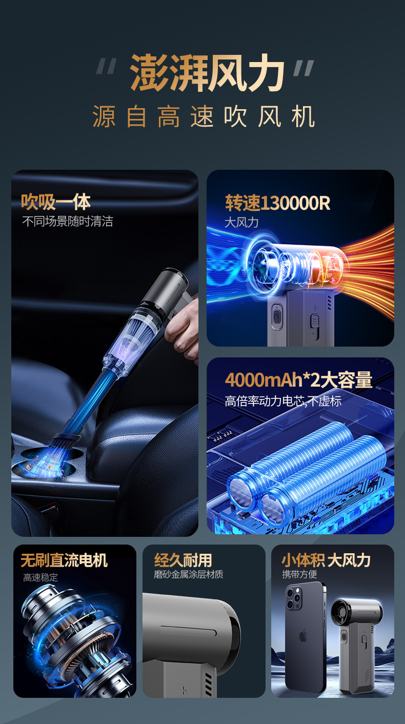 新2025迷你渦輪手持風扇多功能吸吹一體車載吸塵高速暴力吹風機器