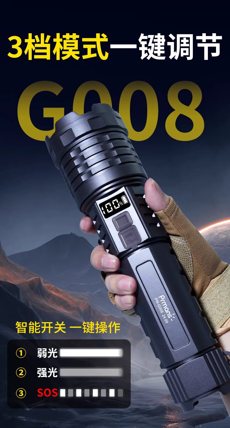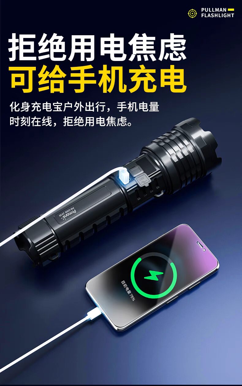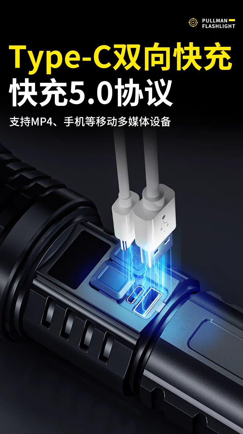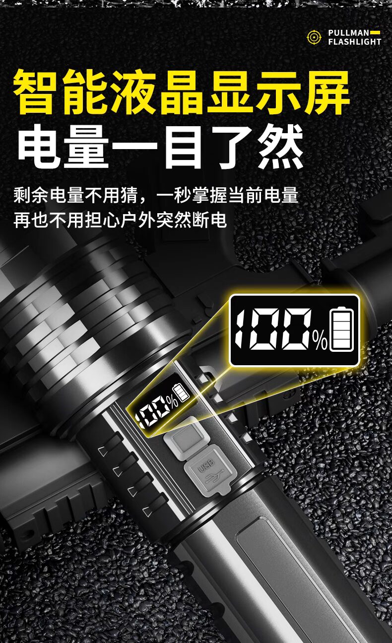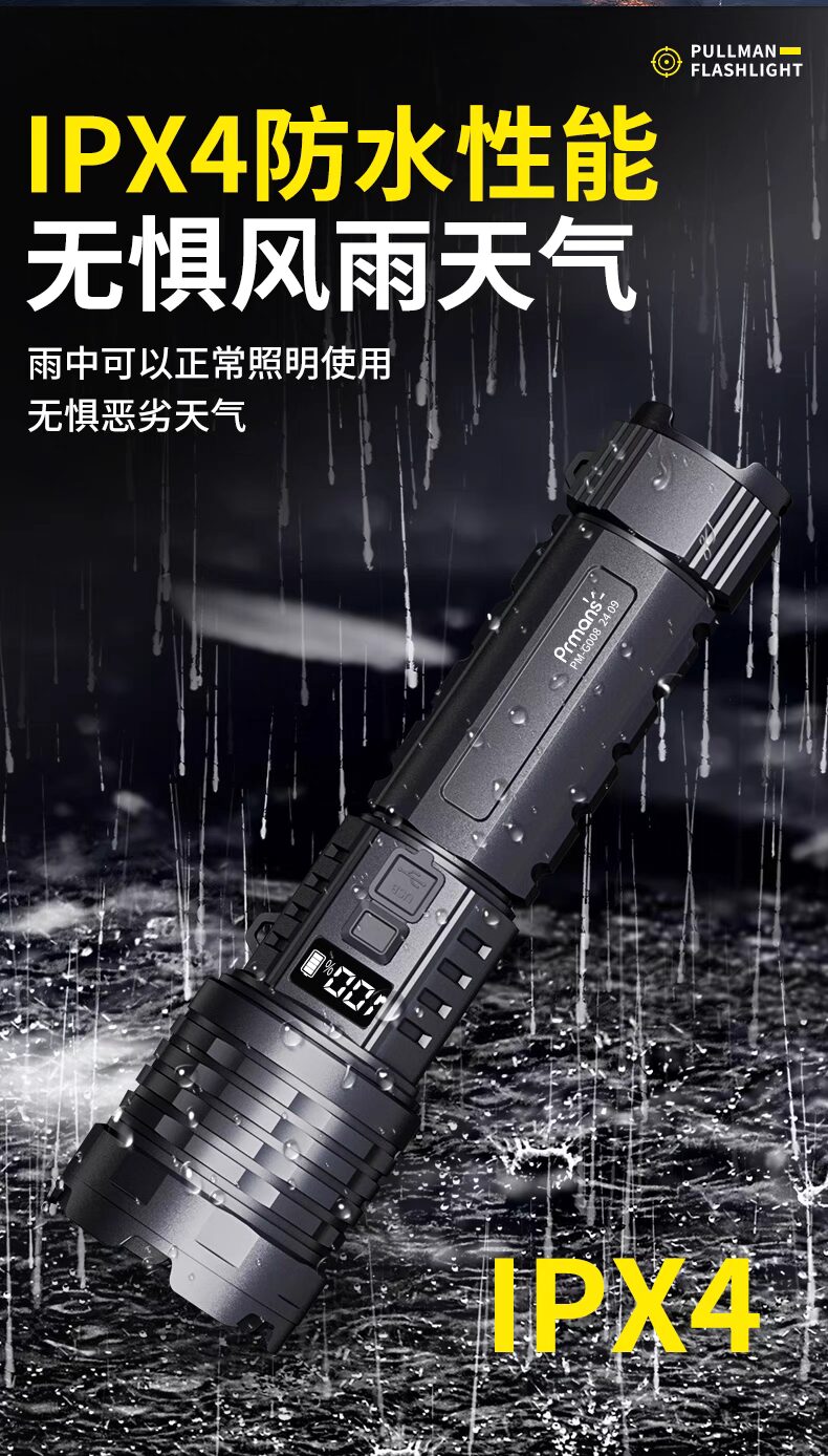 浦爾曼超強光手電筒超亮流明遠射聚光高亮戶外充電式長續航疝氣燈