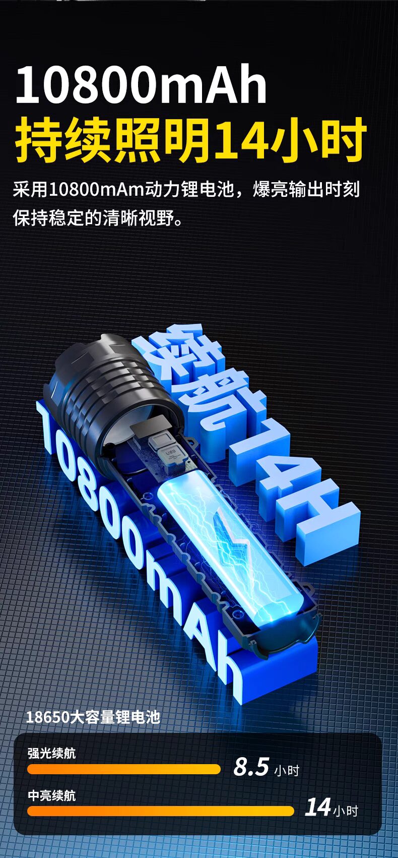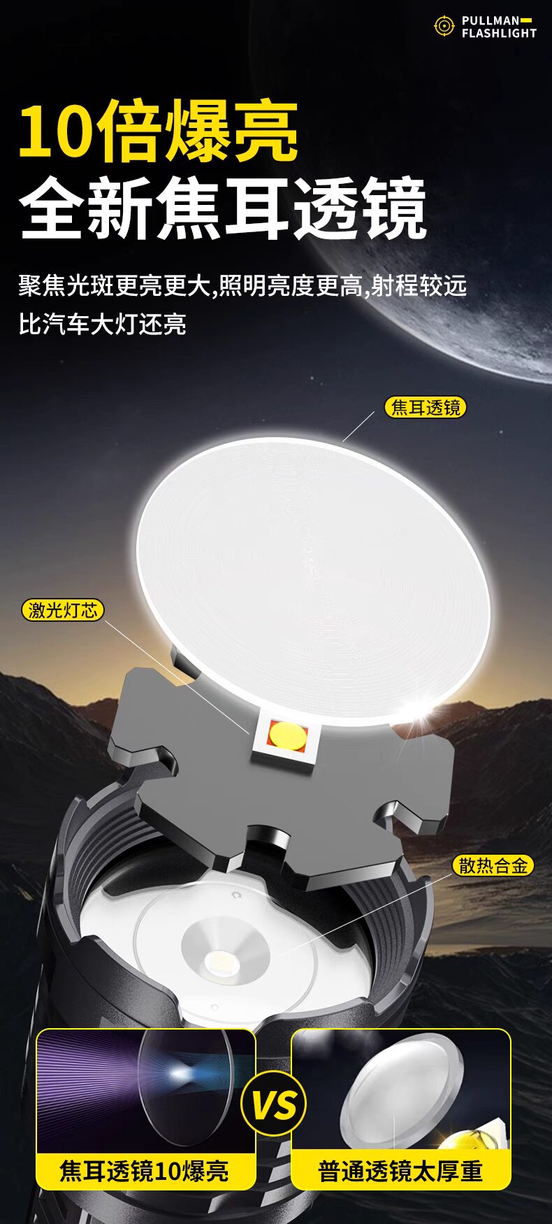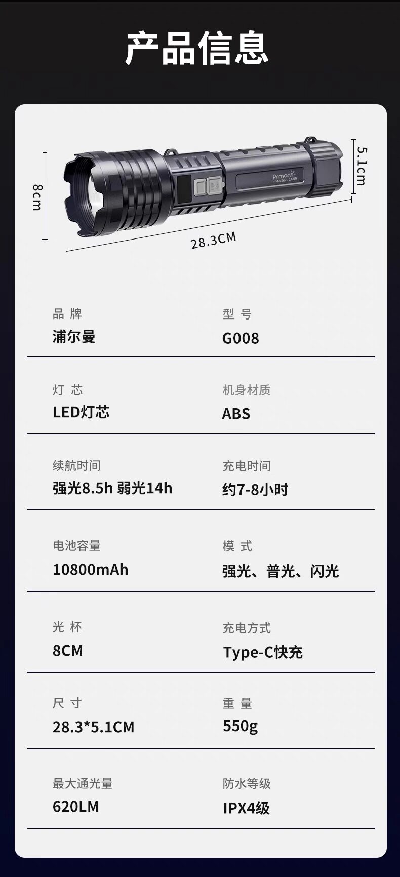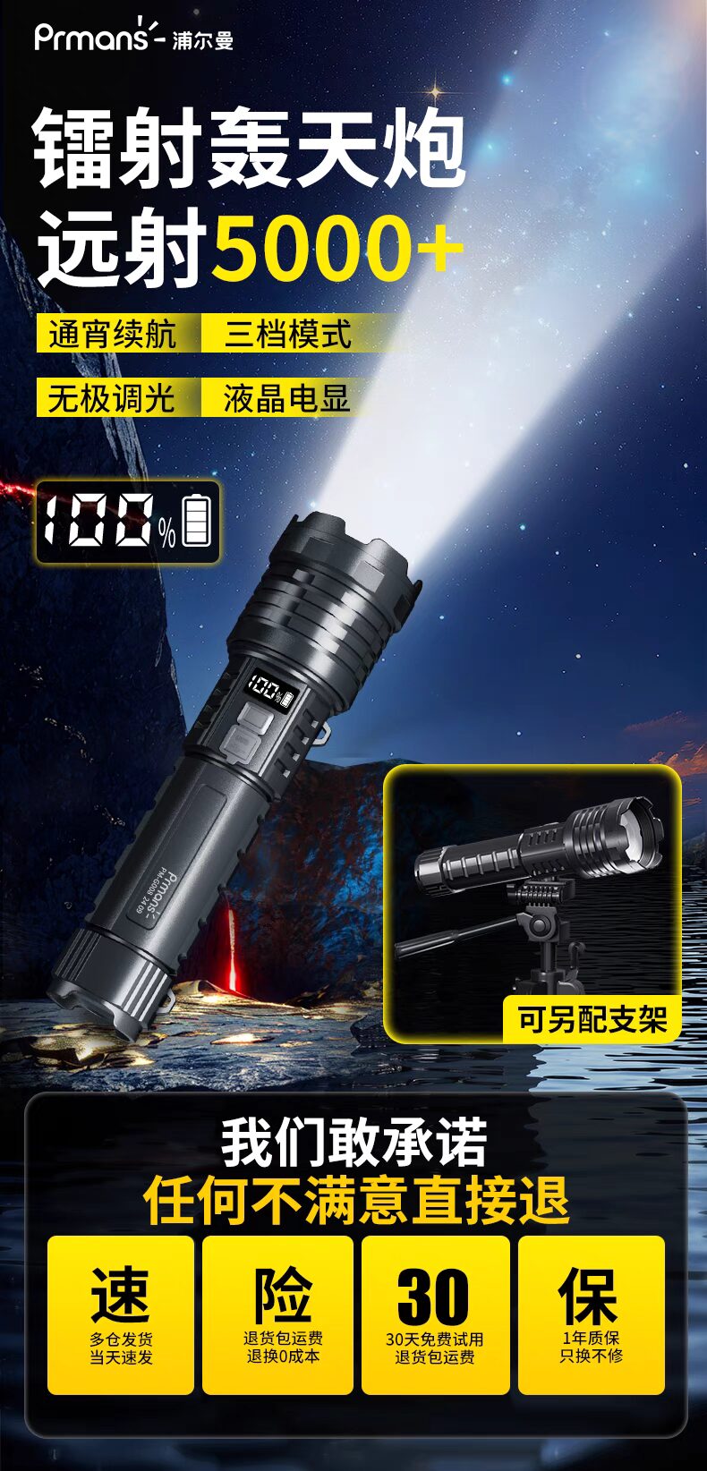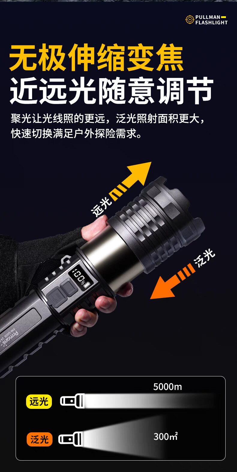 浦爾曼超強光手電筒超亮流明遠射聚光高亮戶外充電式長續航疝氣燈