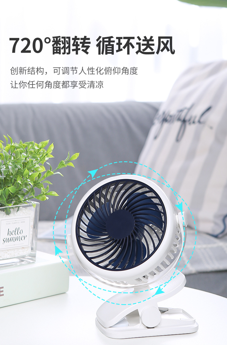 爆款迷你小風扇超靜音夾子風扇便攜多功能夾扇搖頭風扇usb小風扇