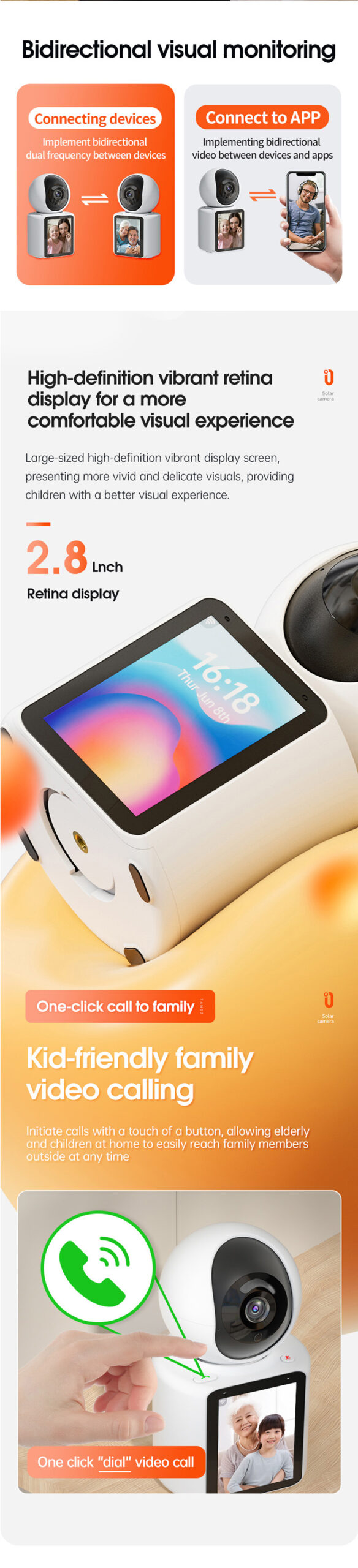 看家王帶螢幕雙向視頻通話攝像機看護老人小孩一鍵呼叫監控攝像頭