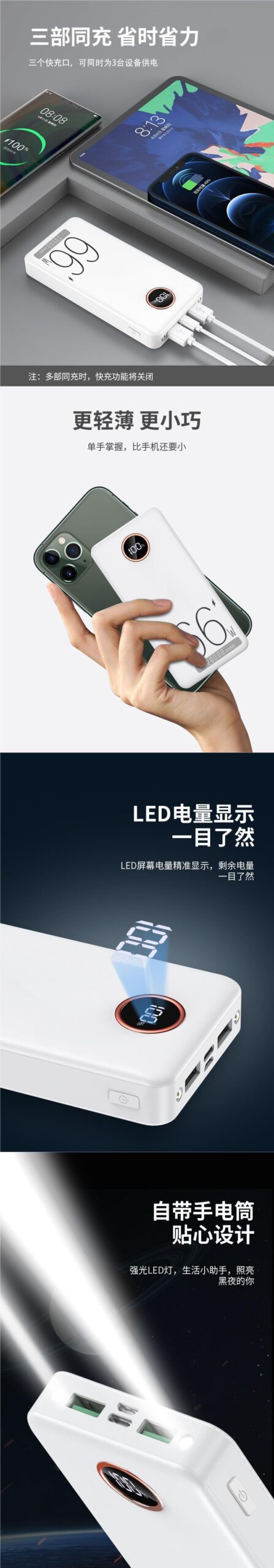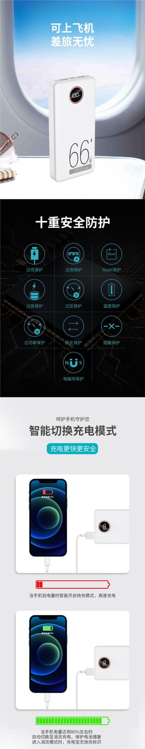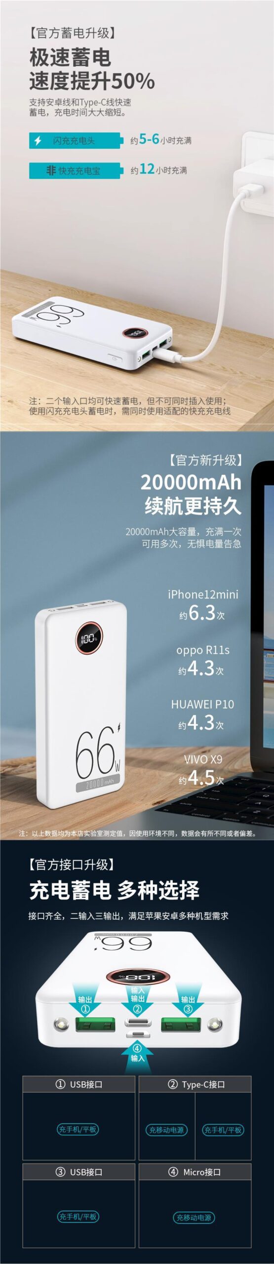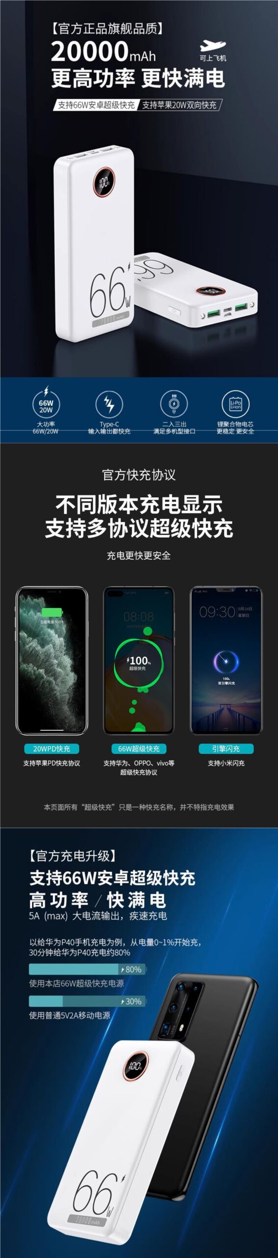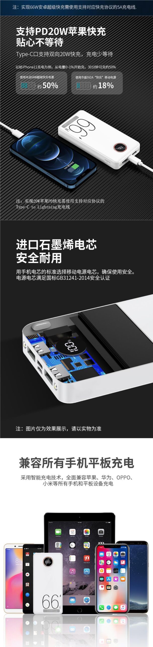 石墨烯66W超級快充充電寶30000毫安超大容量續航超長持久雙向閃充