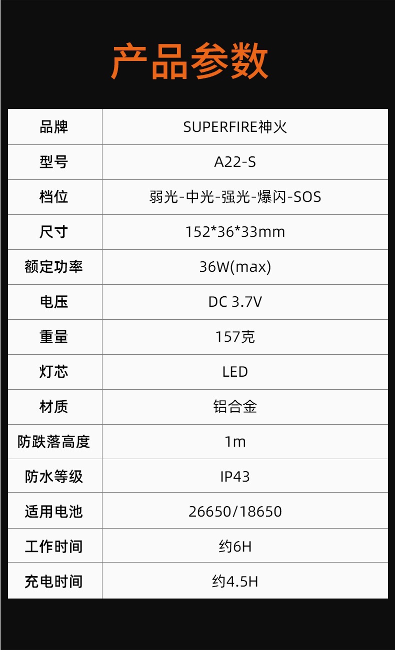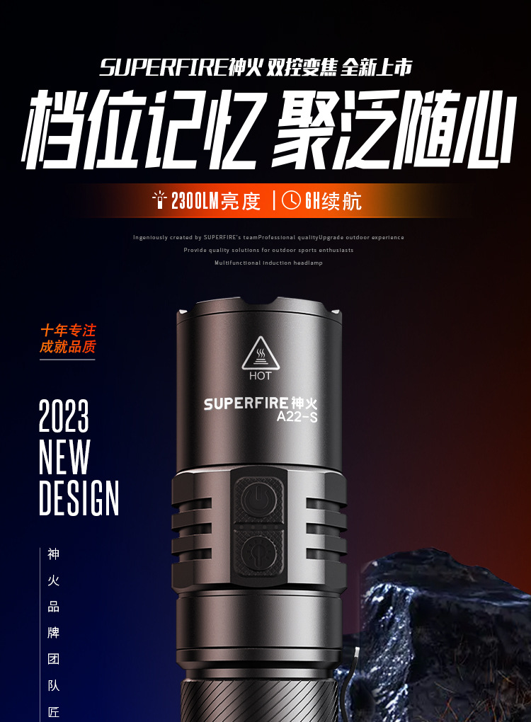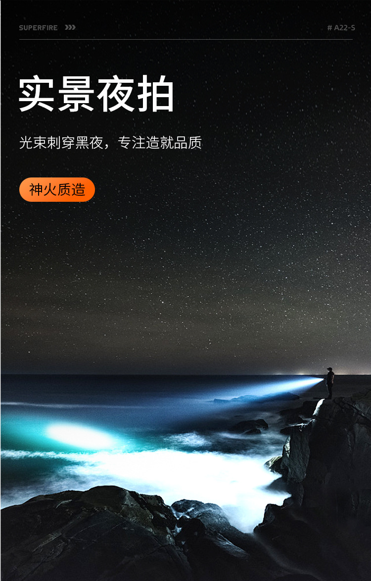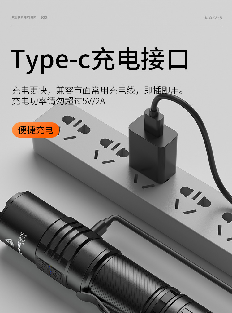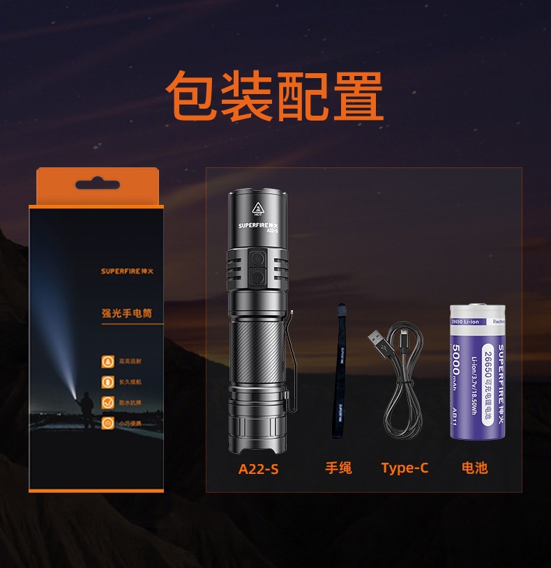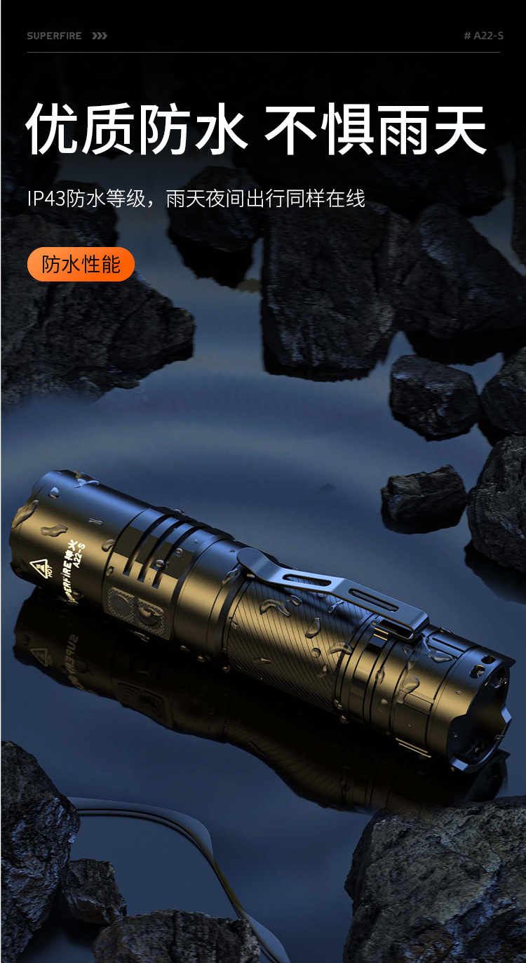 神火A22-S強光超亮遠射36W充電長續航家用戶外遠近伸縮變焦手電筒