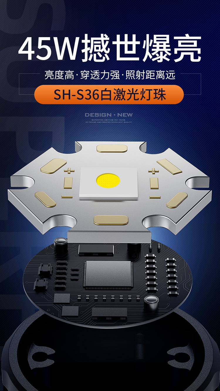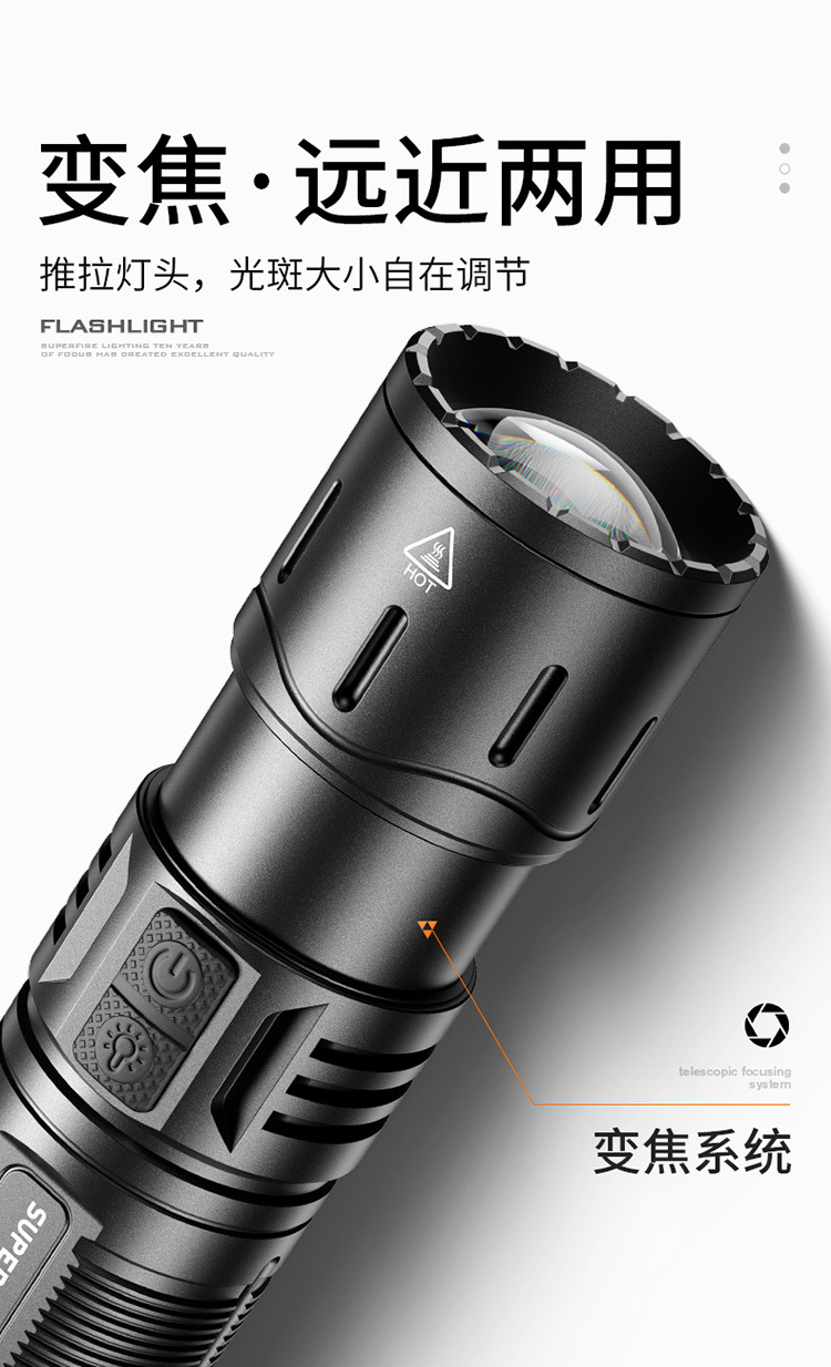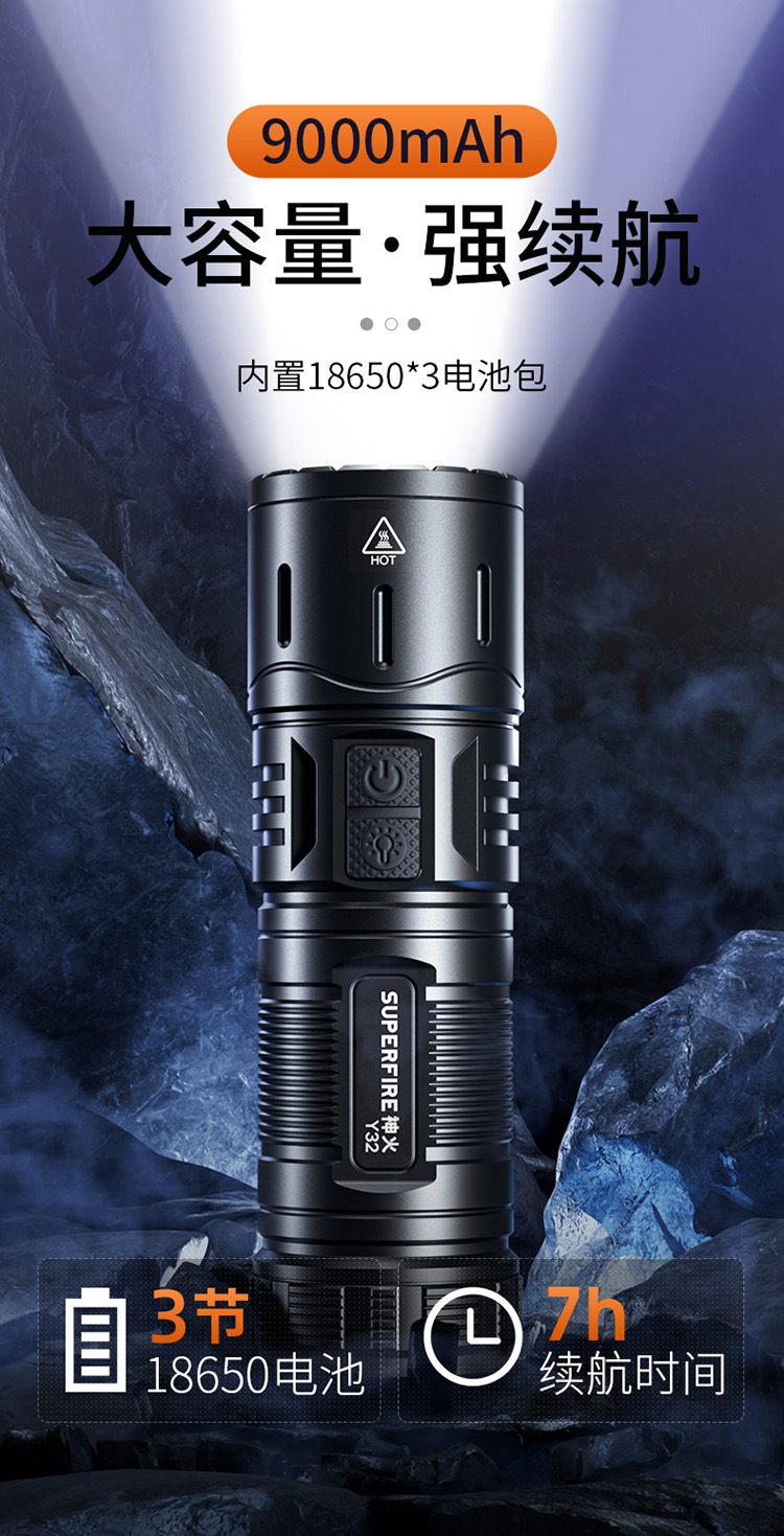 神火Y32強光超亮遠射充電調焦變光45W戶外家用長續航白激光手電筒