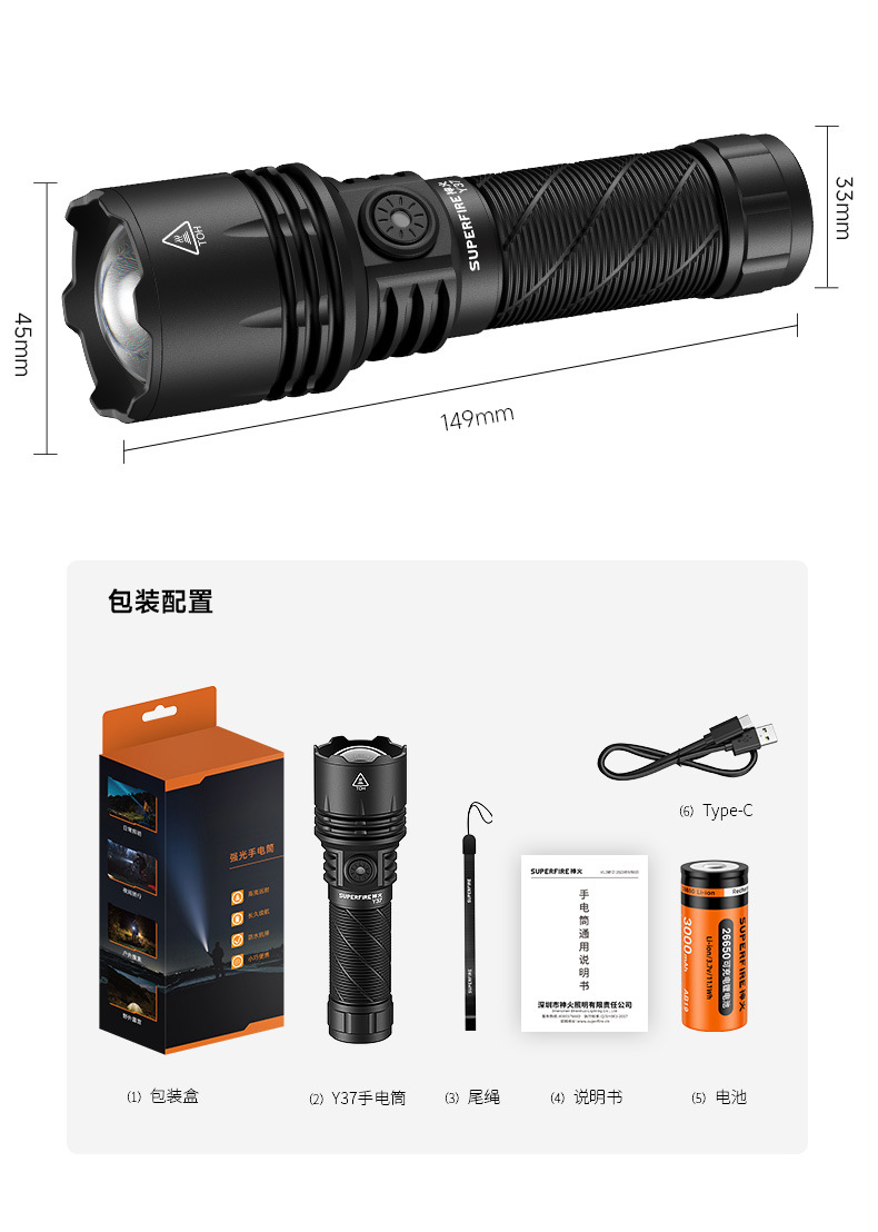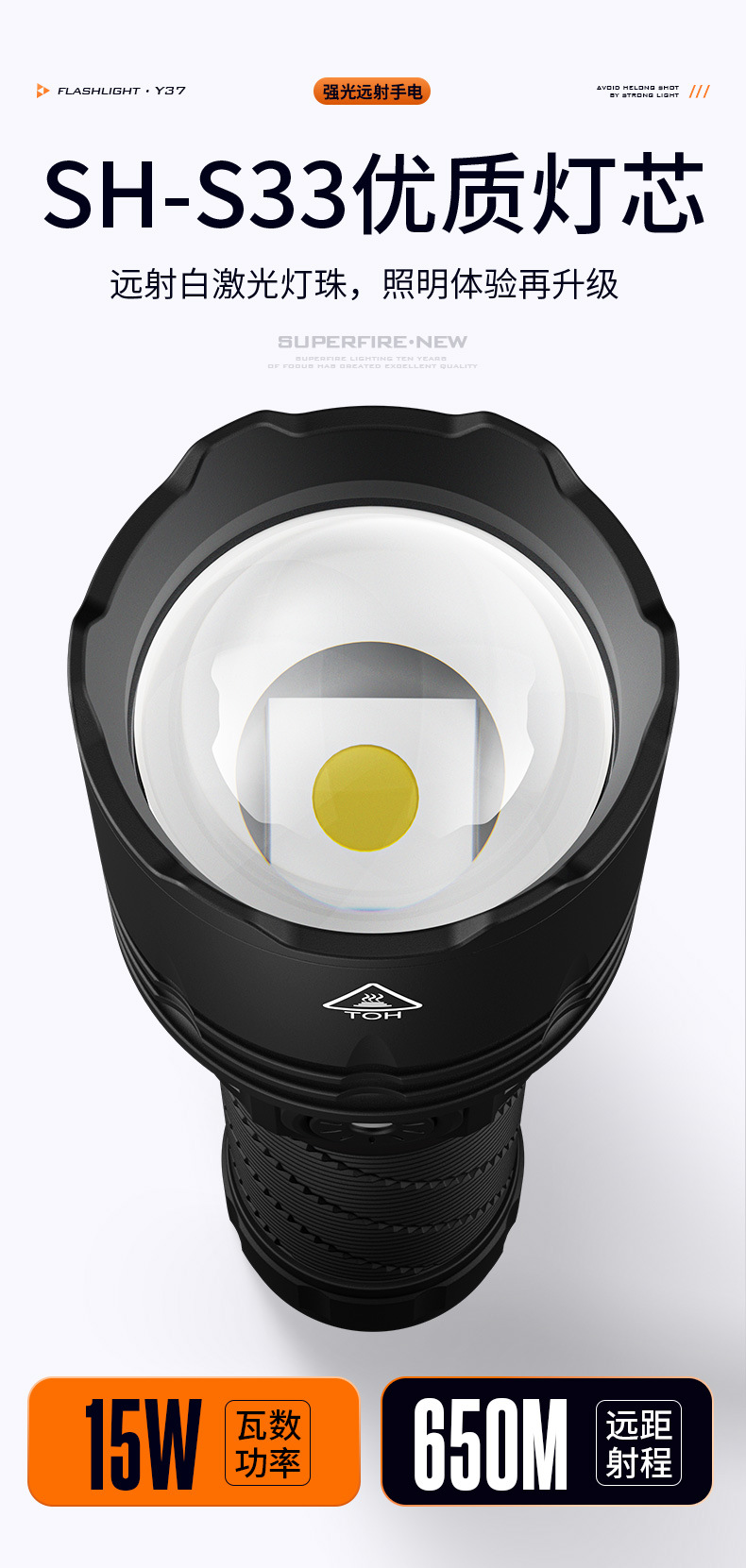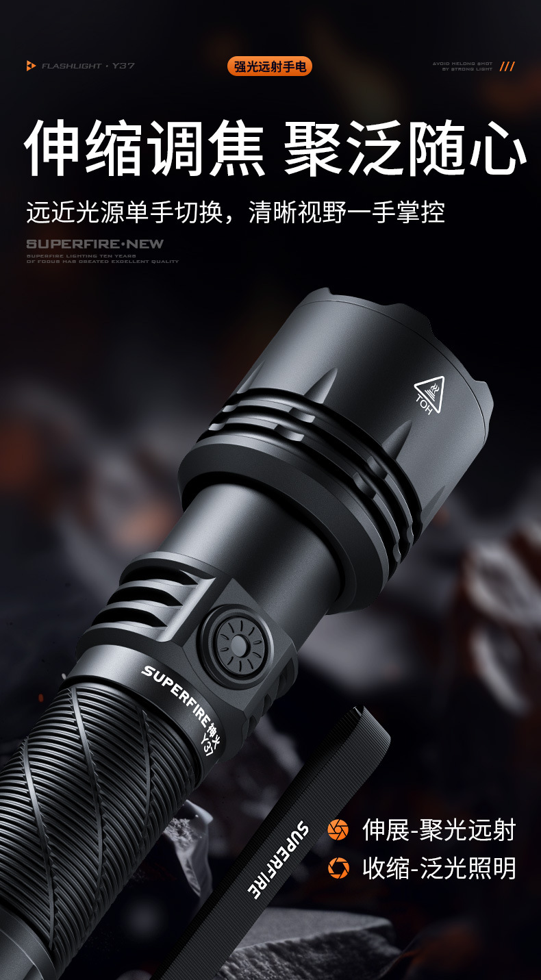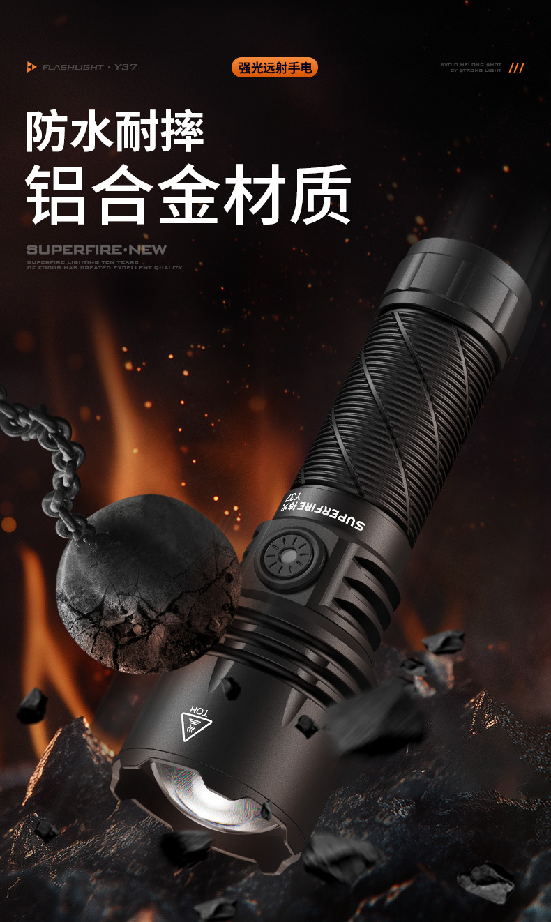 神火Y37手電筒強光充電戶外超亮變焦防水鋁合金防身定焦強光