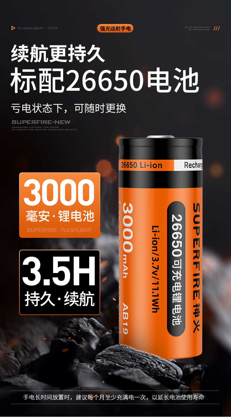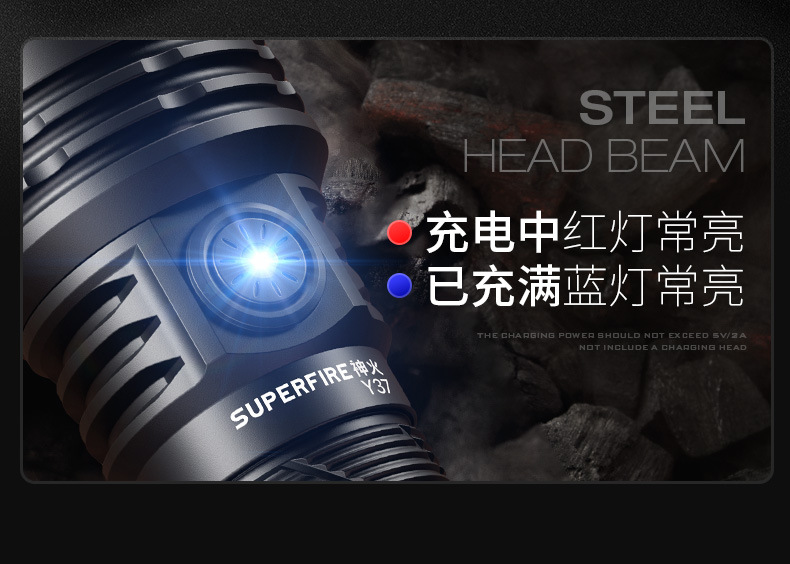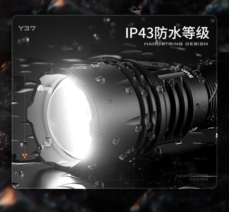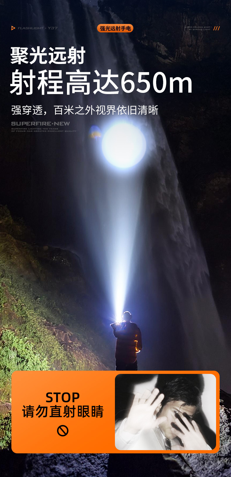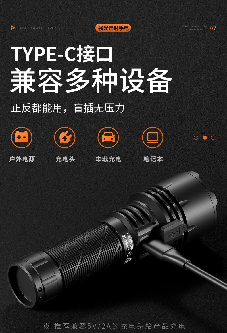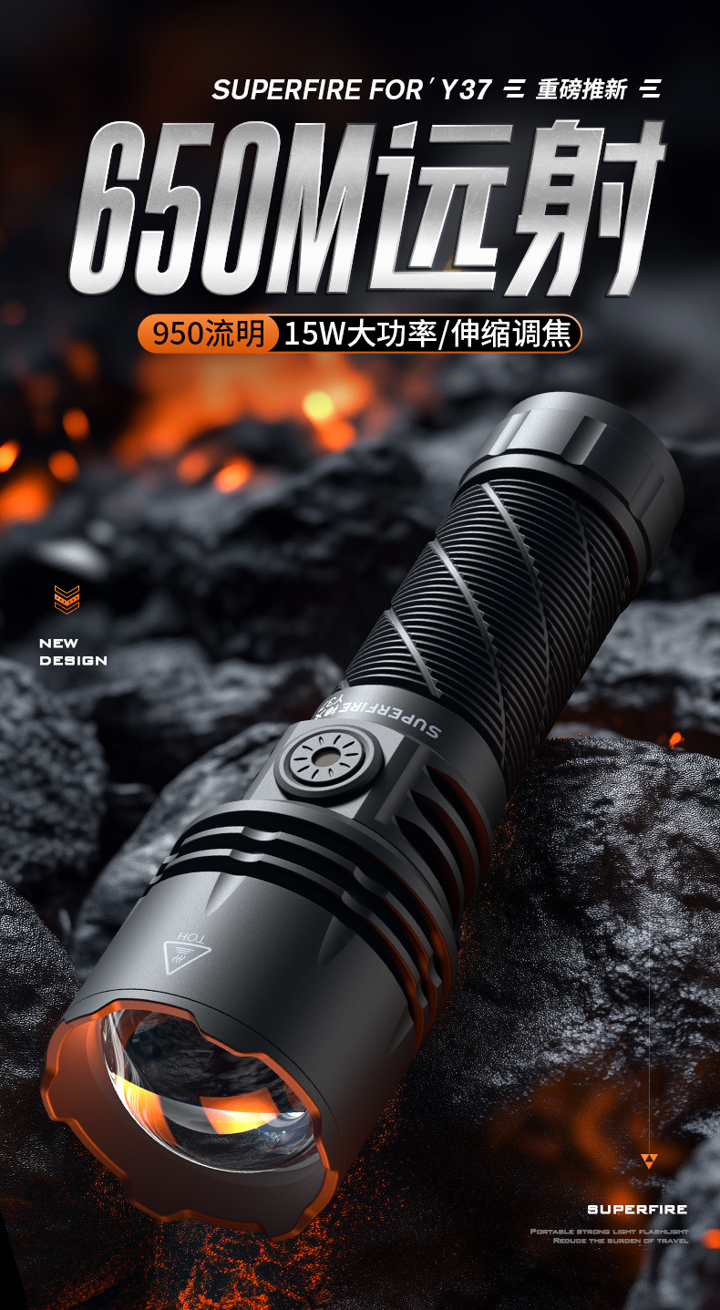 神火Y37手電筒強光充電戶外超亮變焦防水鋁合金防身定焦強光