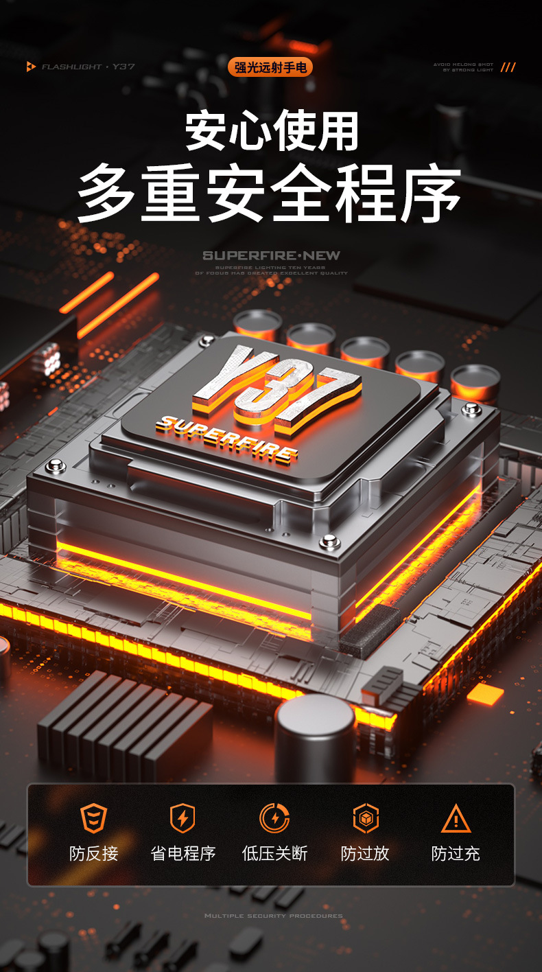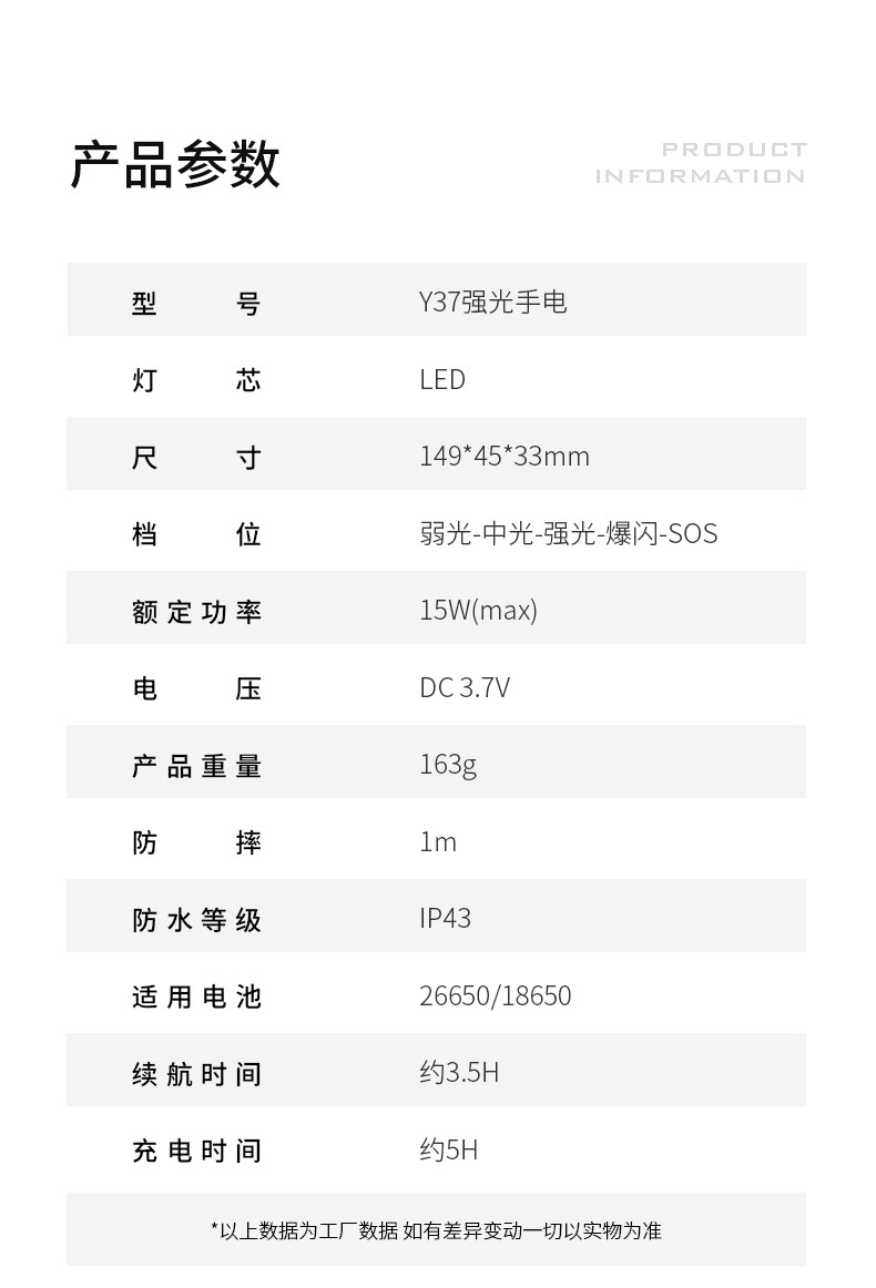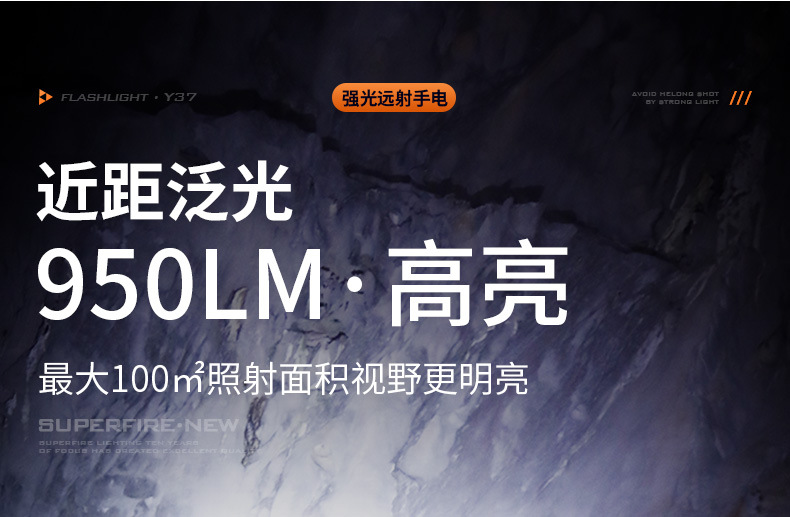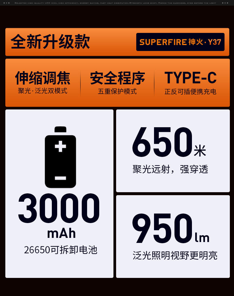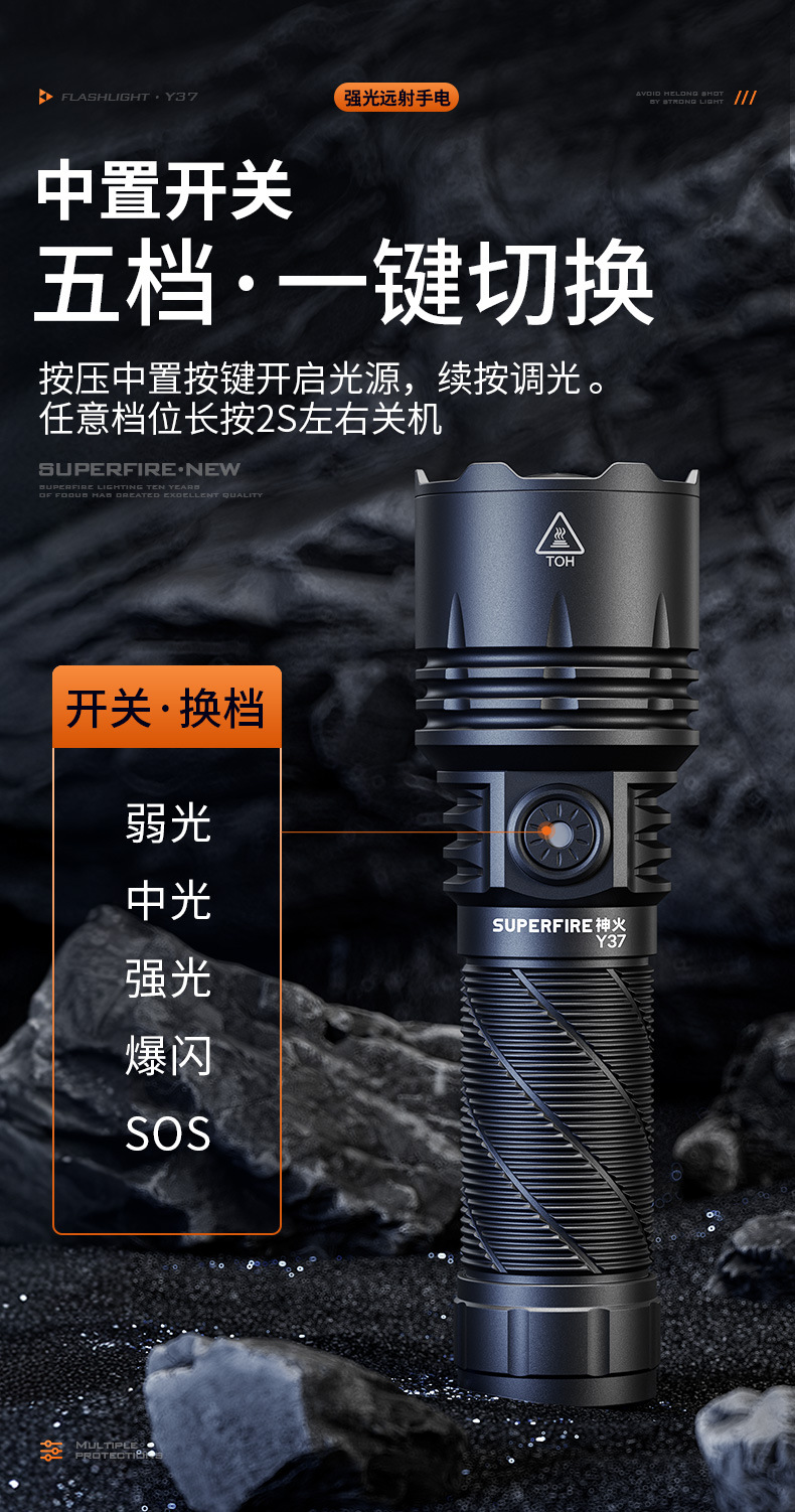 神火Y37手電筒強光充電戶外超亮變焦防水鋁合金防身定焦強光