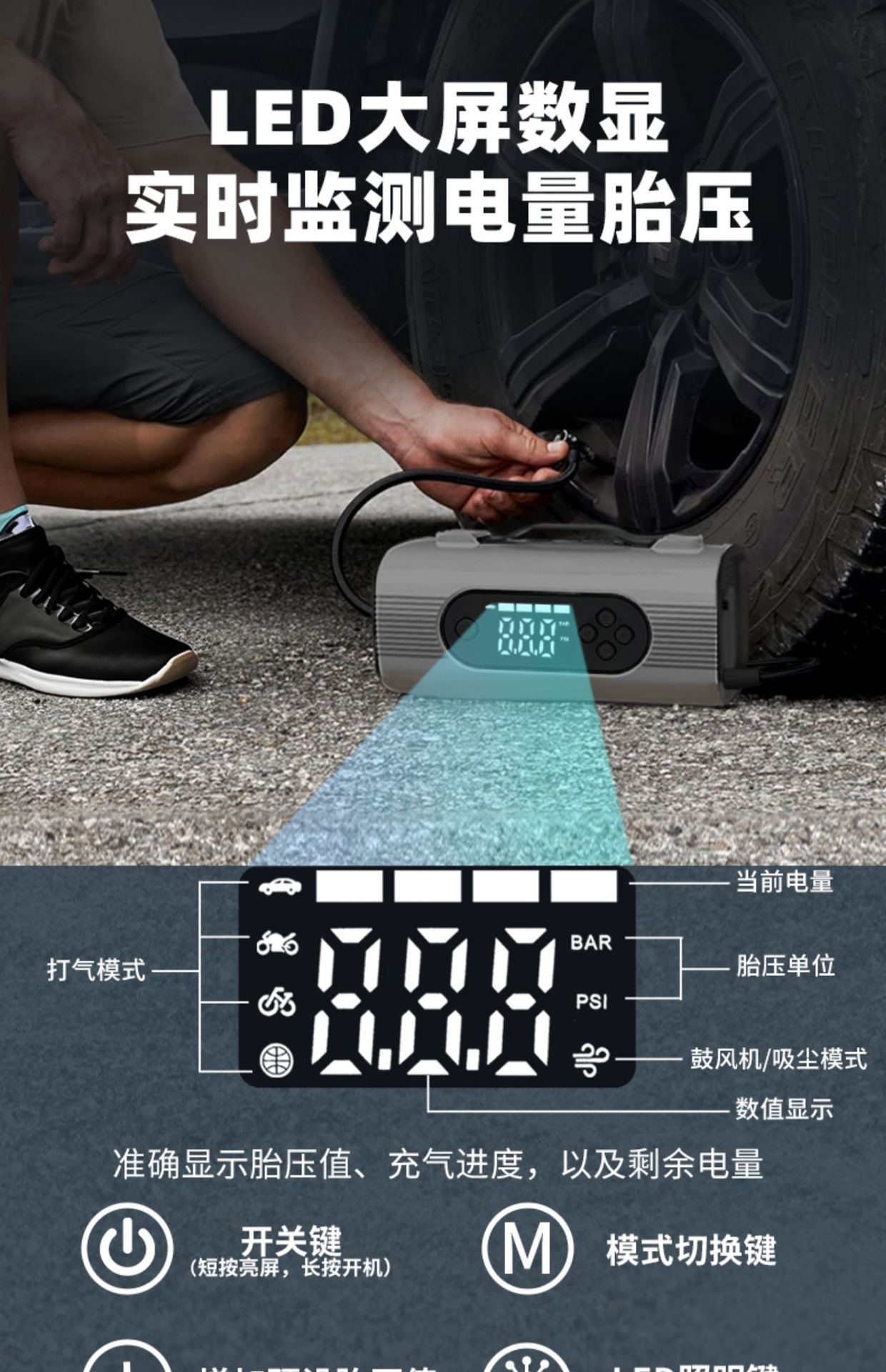 汽車載充氣打氣泵啟動應急電源多功能吸塵器鼓風多合一體機器