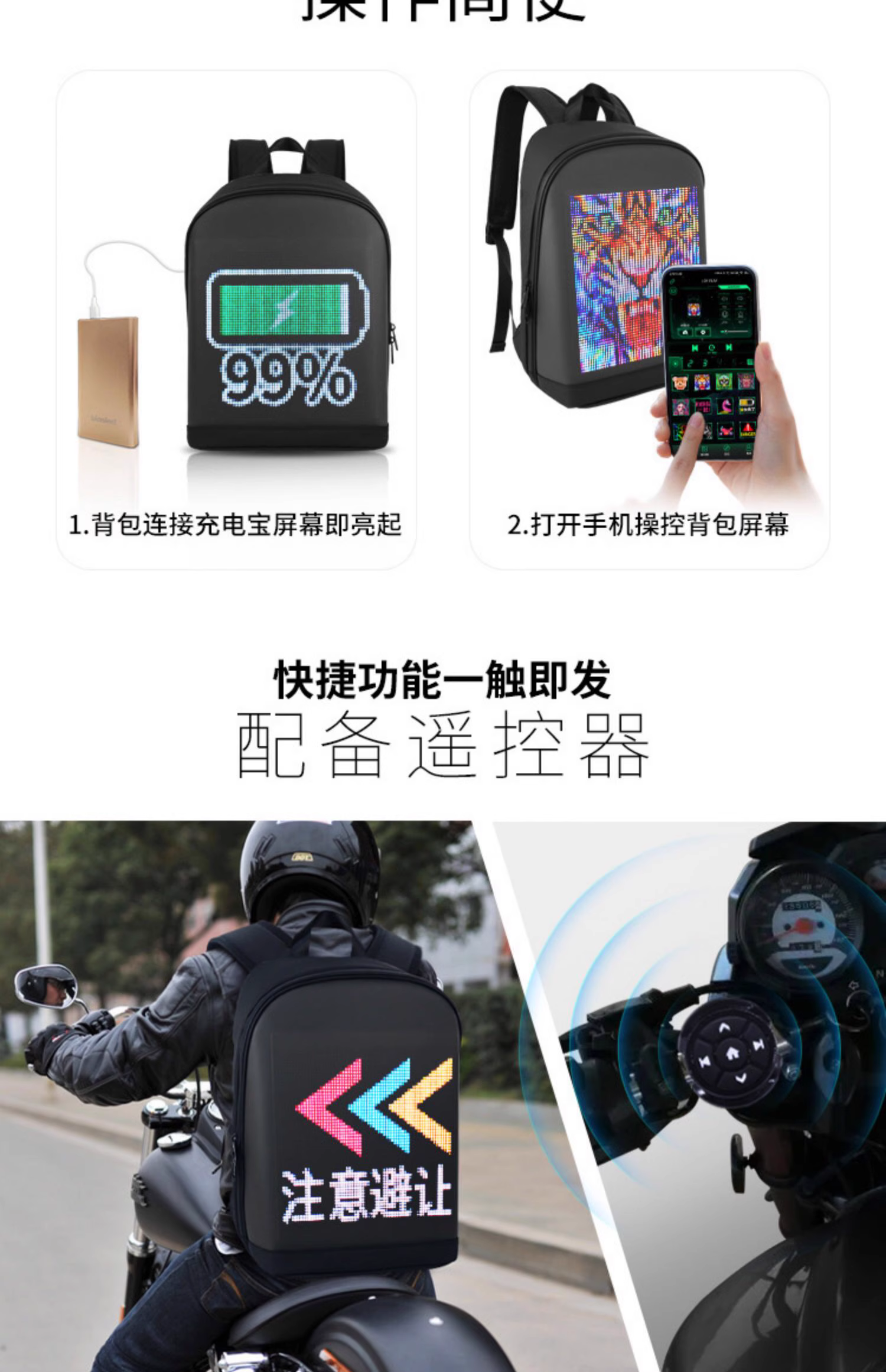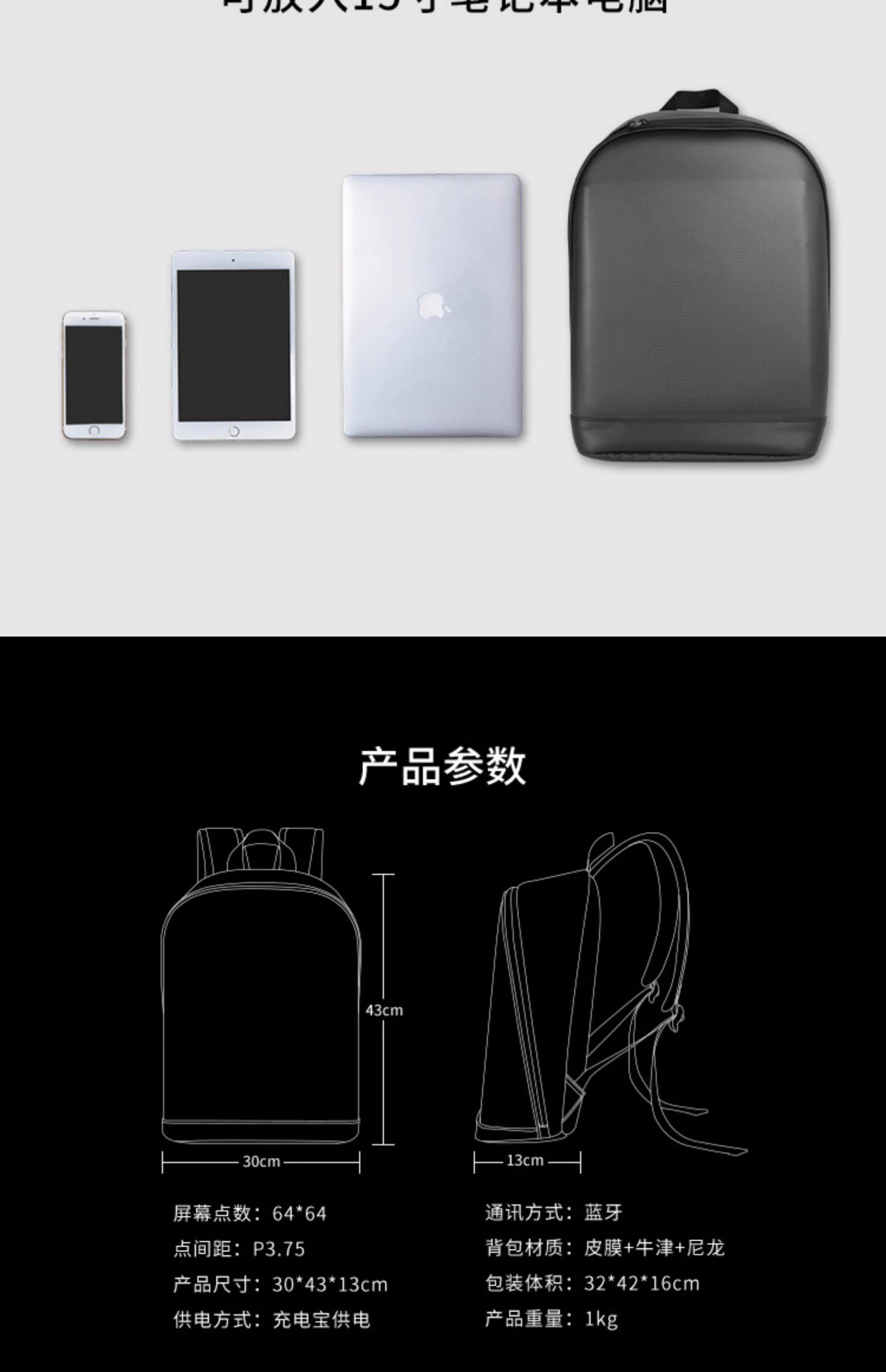 雙肩背包潮流男女代駕發光LED顯示屏幕發光防潑水