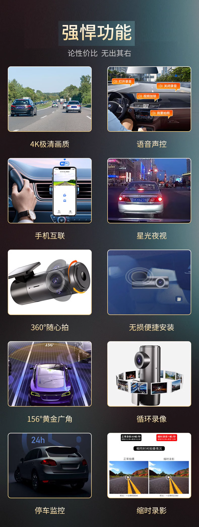2025新款4k超清行車記錄儀手機互聯wifi停車監控通用縮時錄影