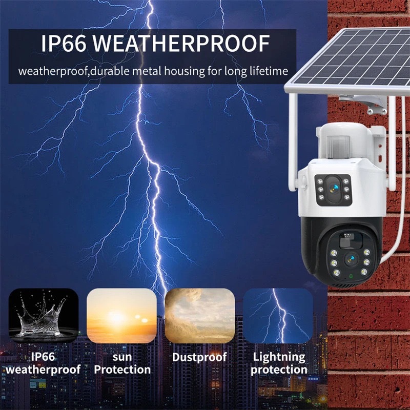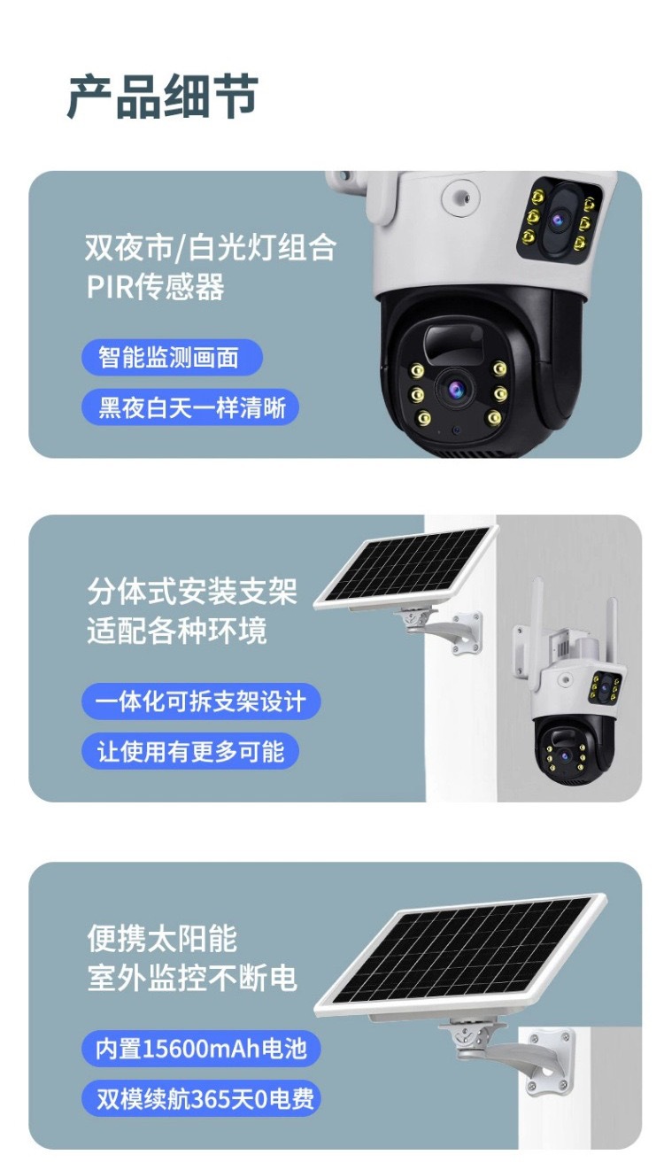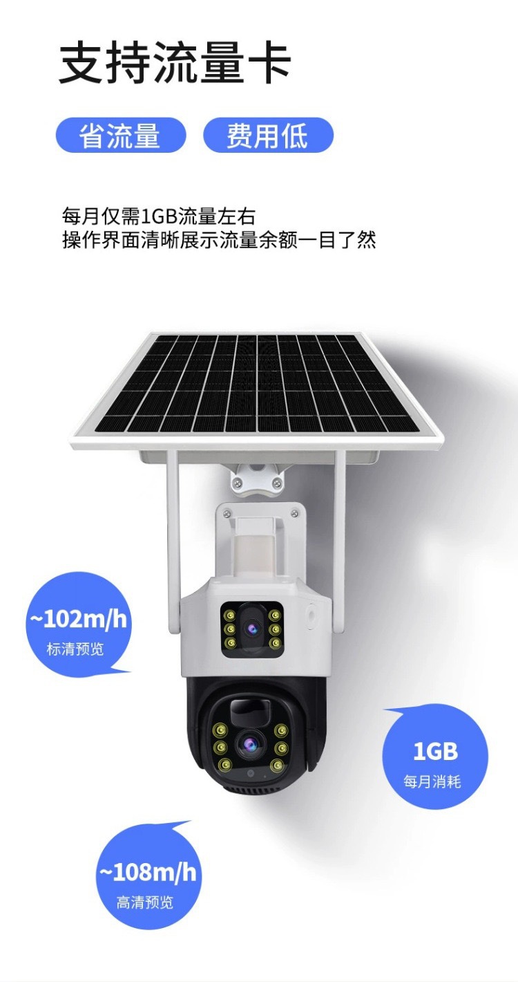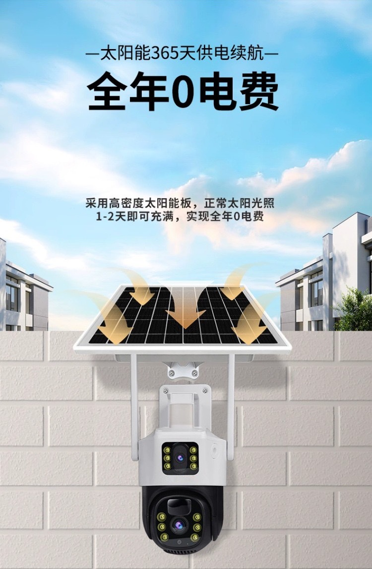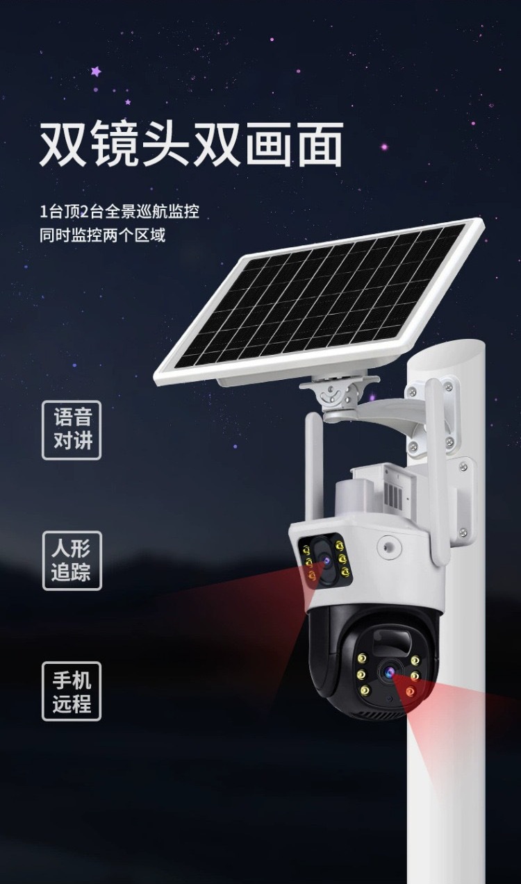 V380太陽能solarcctv攝像頭家用手機遠程雙鏡頭室外4g太陽能監控