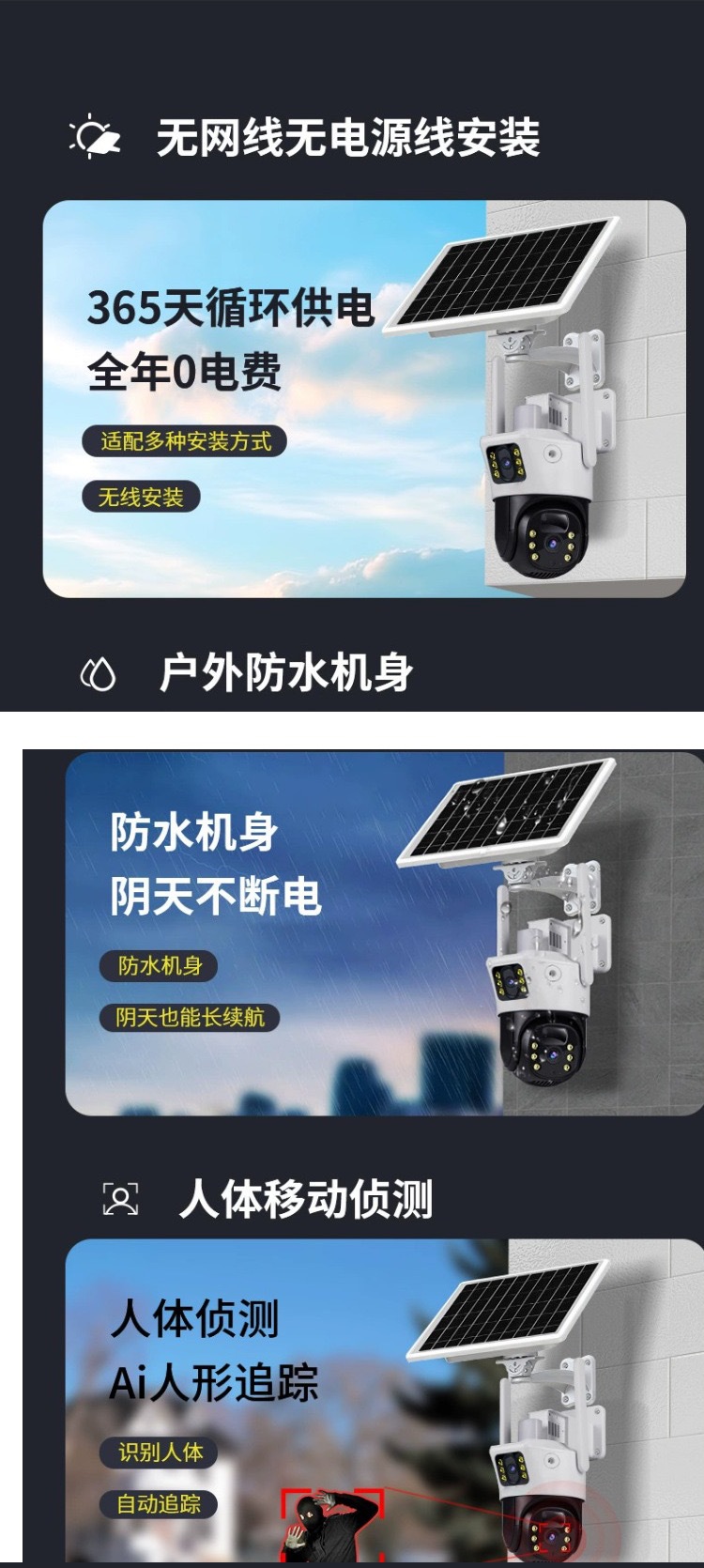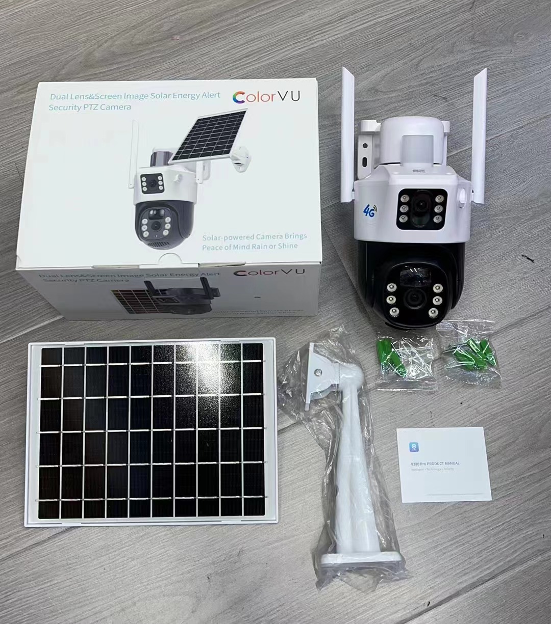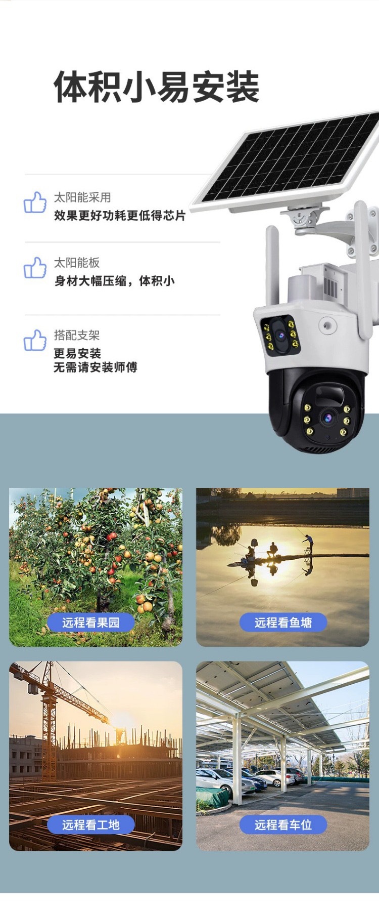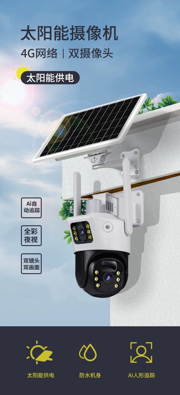 V380太陽能solarcctv攝像頭家用手機遠程雙鏡頭室外4g太陽能監控