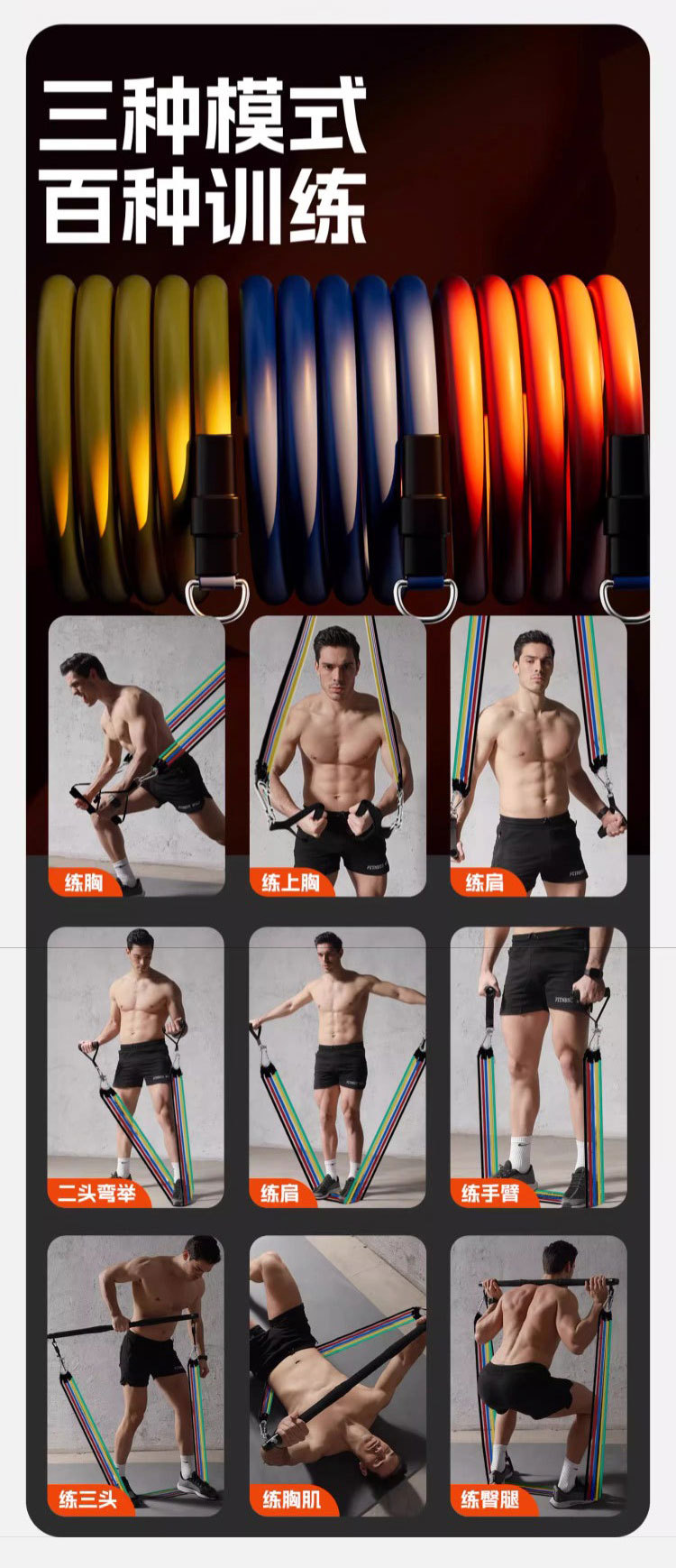 多功能拉力器家用運動健身器材拉力帶胸肌訓練彈力帶11件套拉力