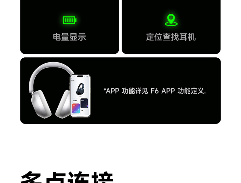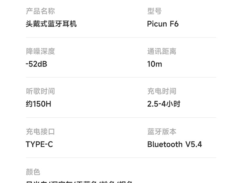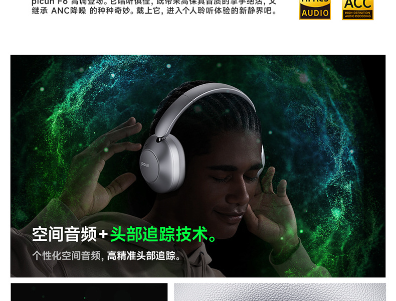 Picun 品存 F6 頭戴式藍牙ANC主動降噪耳機遊戲低延遲ENC通話降噪