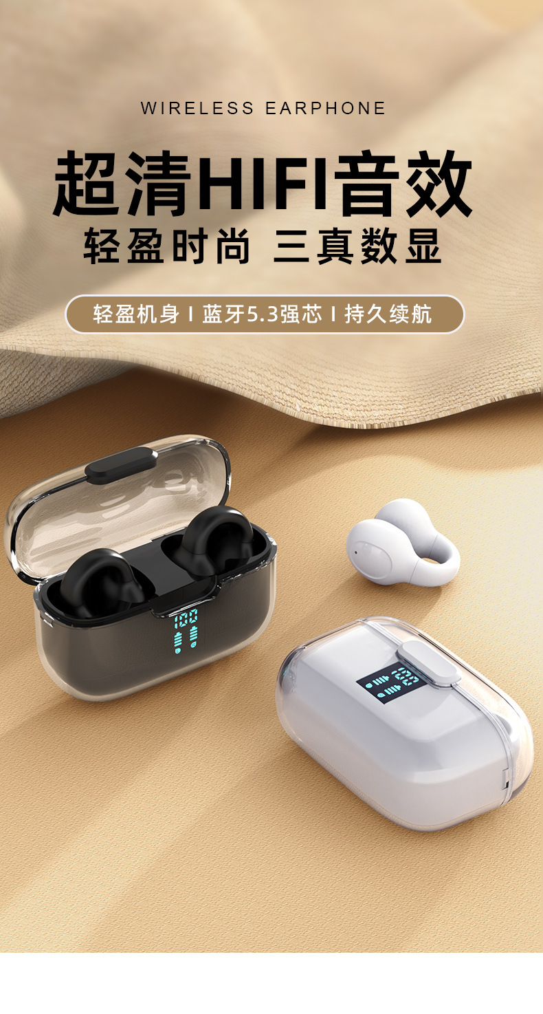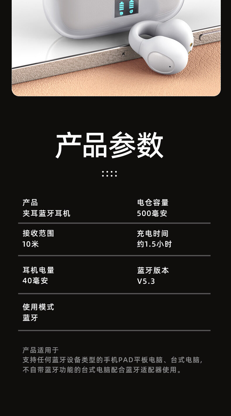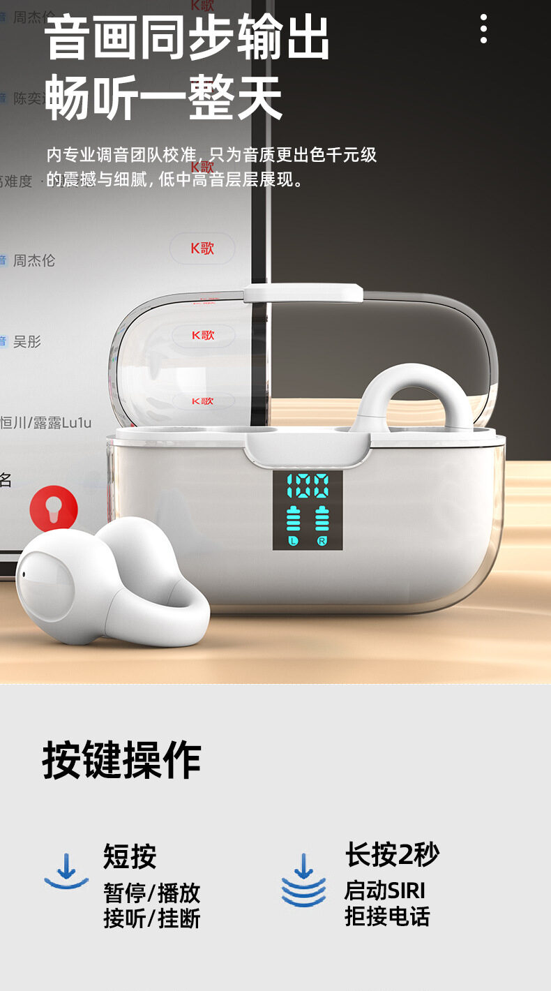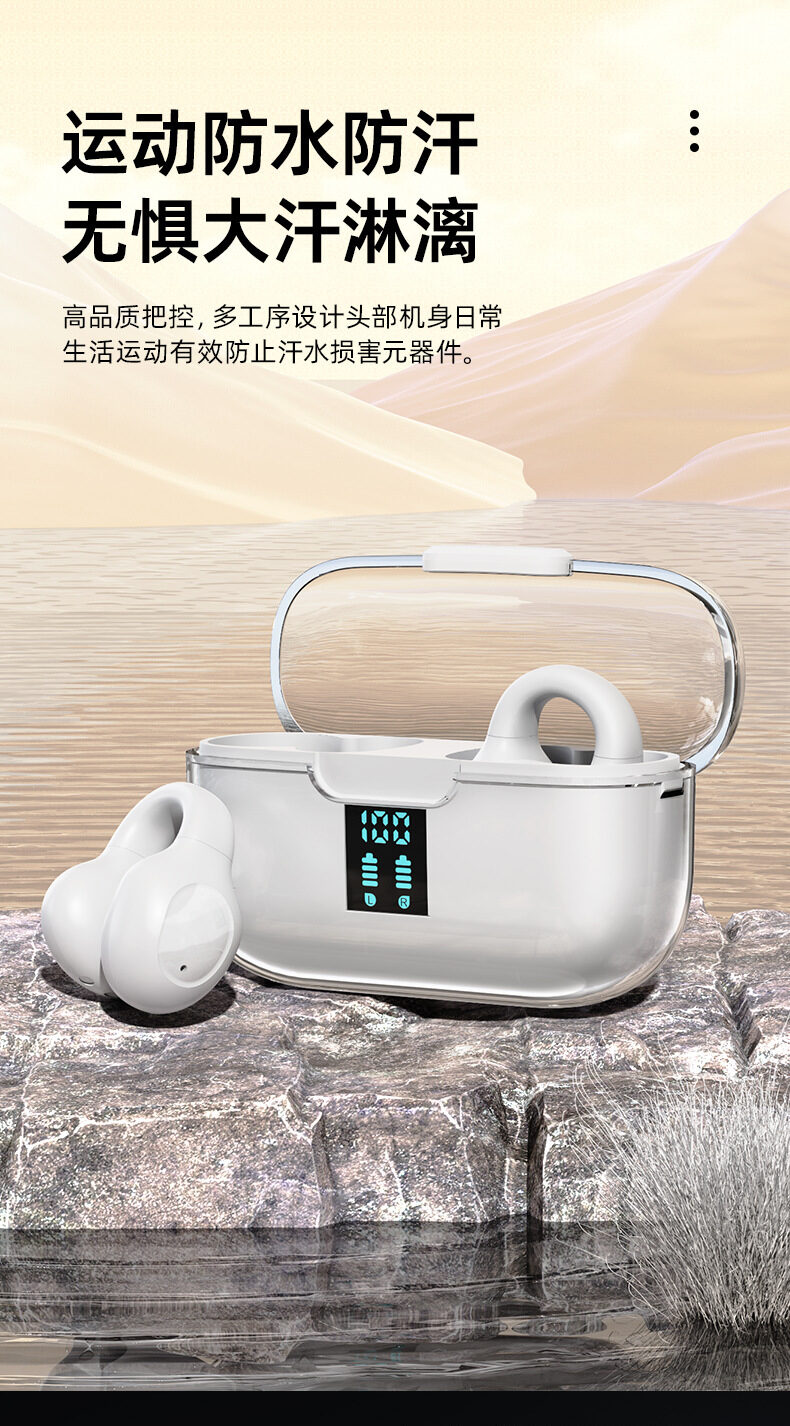 tws夾耳式無線藍牙耳機私模傑理5.3智能不入耳運動耳機